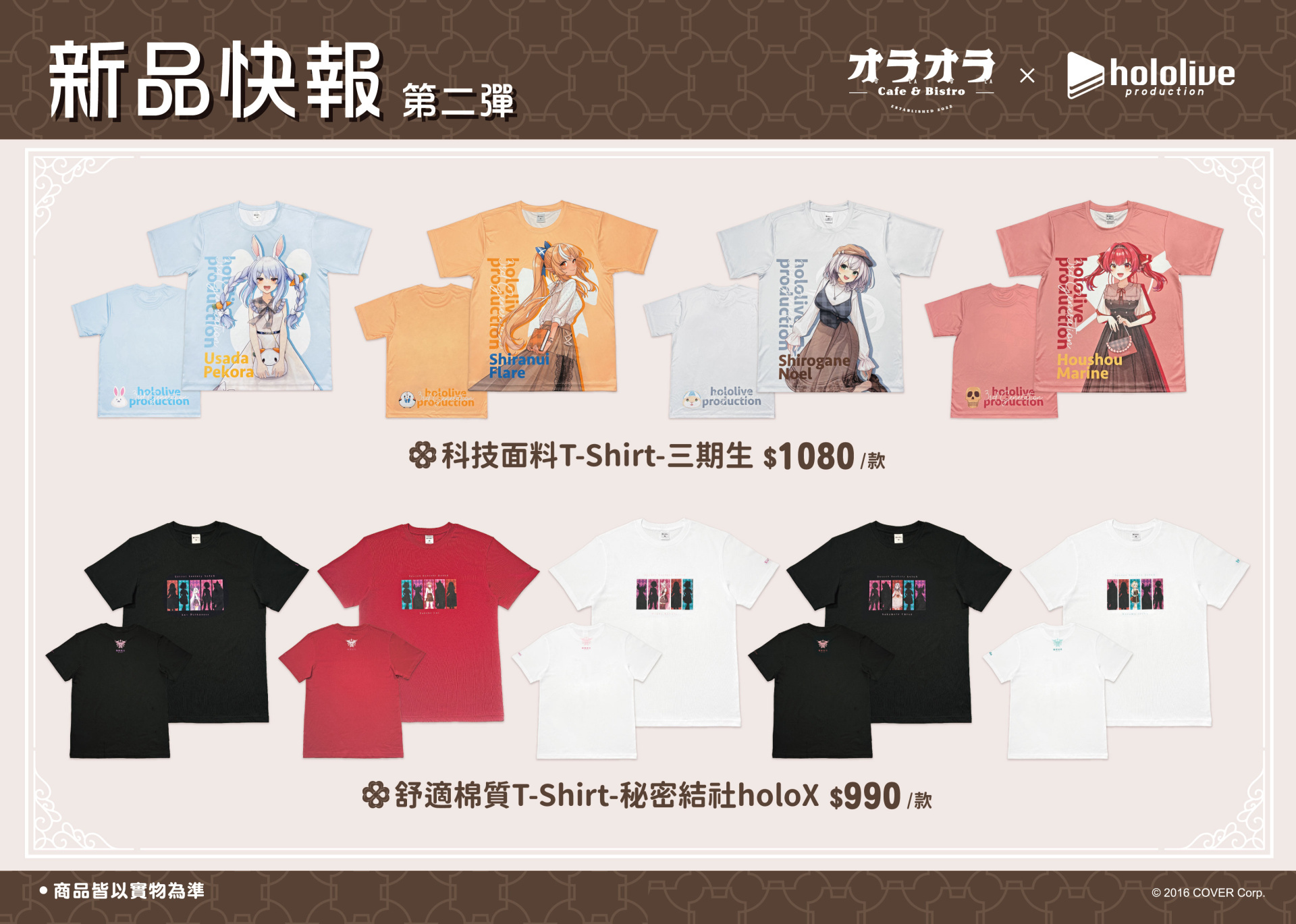 「FANFANS 粉粉」自去年起與日本 COVER 旗下 VTtuber 企劃「hololive production」展開一系列合作,並且推出各式主題快閃餐廳後,官方於今(29)日宣布將推出三期生和秘密結社 holoX 成員們的立體珍藏大頭抱枕以及 T-shirt 等新品,另外還有戒指、耳環等全新「心動相遇」系列飾品將會同步登場。