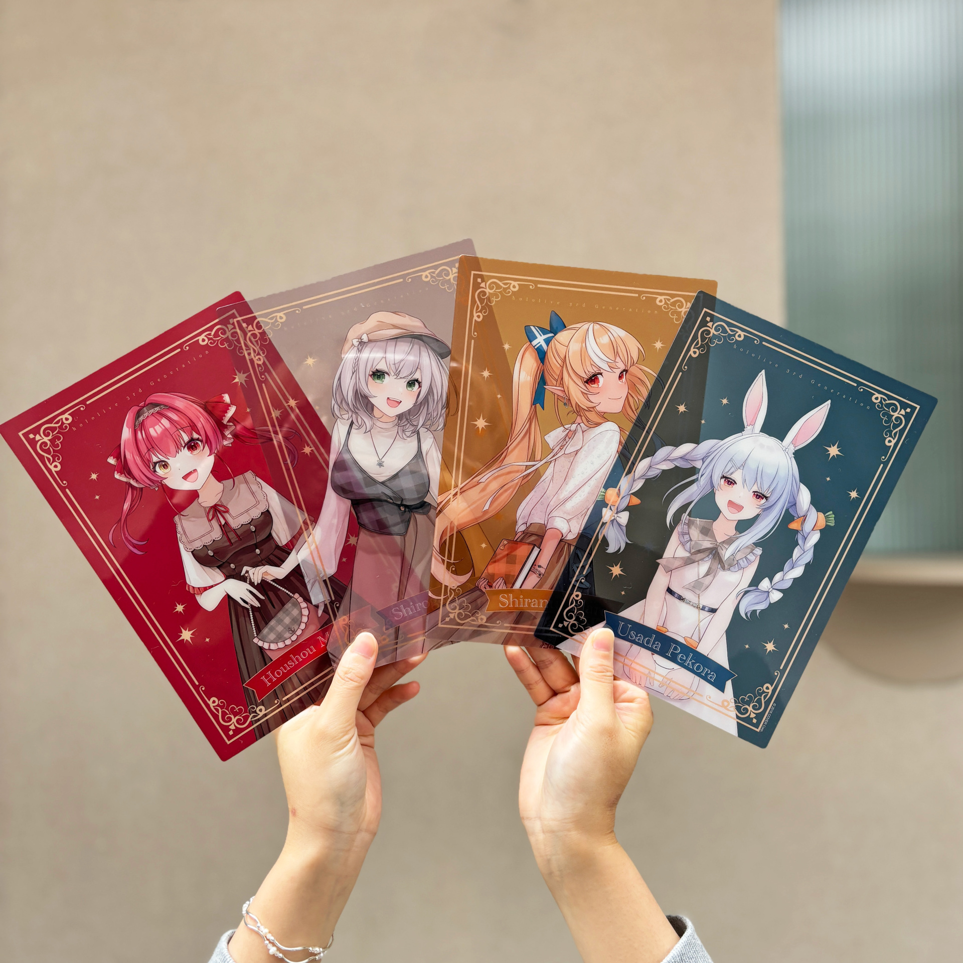 另外,這次也全新推出短袖 T-shirt 系列,三期生的四位成員採用科技面料、彈性親膚,配上大圖設計。秘密結社 holoX 的五位成員則採用舒適棉質,正面以四位成員的剪影加上一位成員的正面形象露出。 其他包括日前合作推出的系列商品,像是除了基本銀邊款之外、還有著隱藏金邊款等大家試手氣的「盲抽典藏色紙」、半透明背景搭配復古風立繪的 PVC 典藏卡、鑰匙圈、霧面大徽章等,另外還有 Q 版水瓶等週邊同步推出。