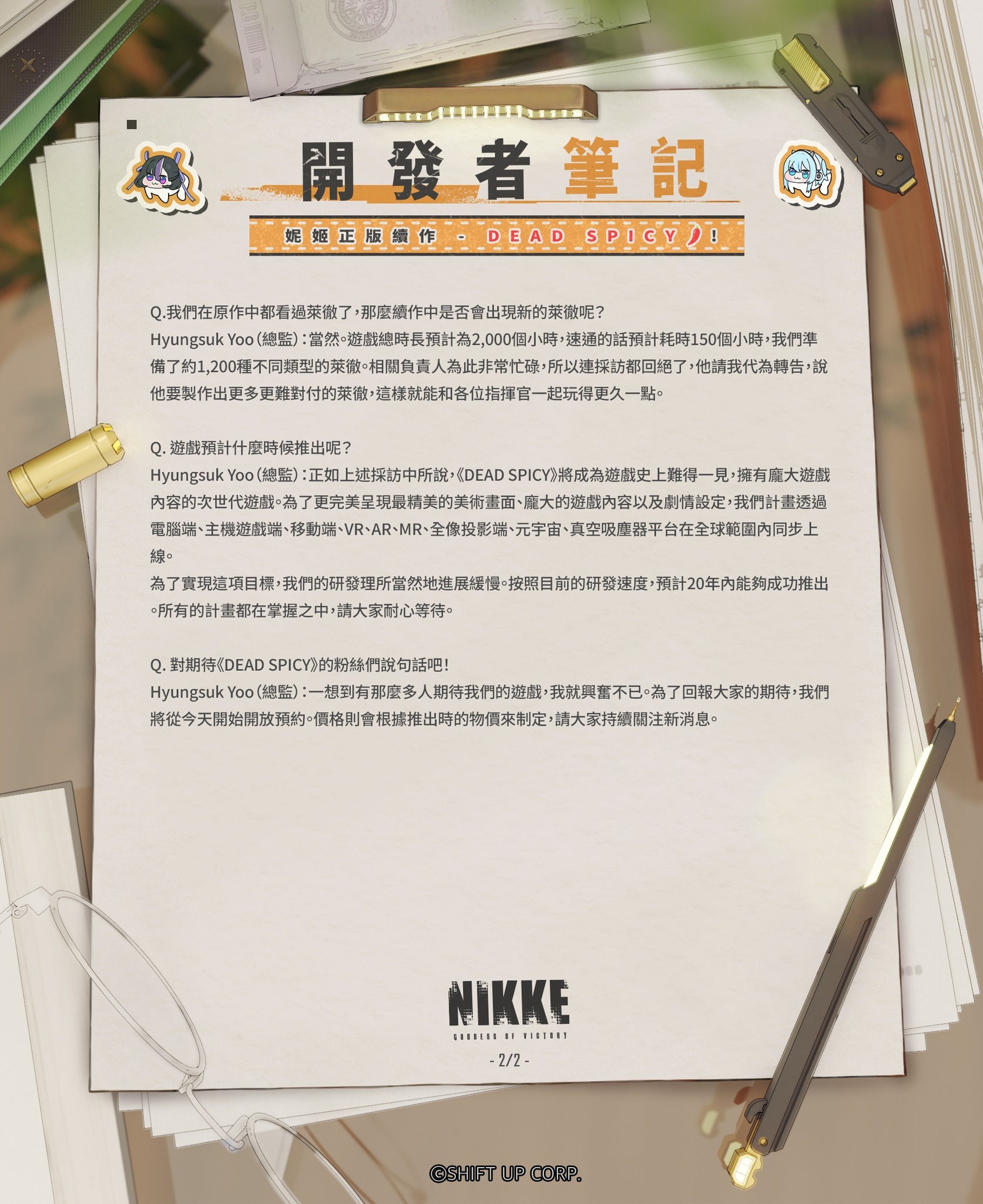 這次我們有幸採訪了妮姬研發團隊並圍繞該團隊目前正在製作的妮姬正統續作——《DEAD SPICY》進行了採訪。