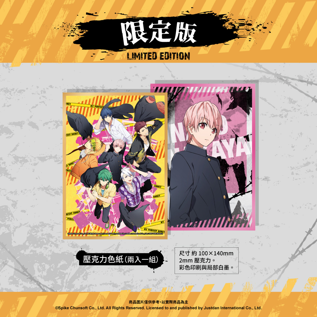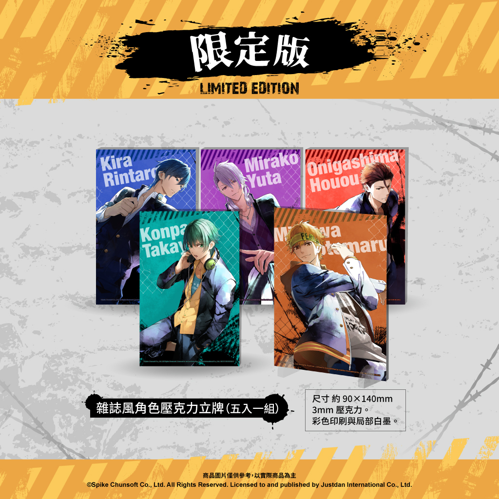 為紀念系列作首次移植以及亞洲中文版發行,限定版除了特製的遊戲外盒外,還準備了精美的壓克力色紙、銀箔海報組及雜誌風角色壓克力立牌,讓有各自魅力的主要角色們隨時陪伴在玩家身邊。另外,收錄主視覺插圖、CG 及角色設定等的特典小冊子也將完整中文化,精美內容不容錯過!