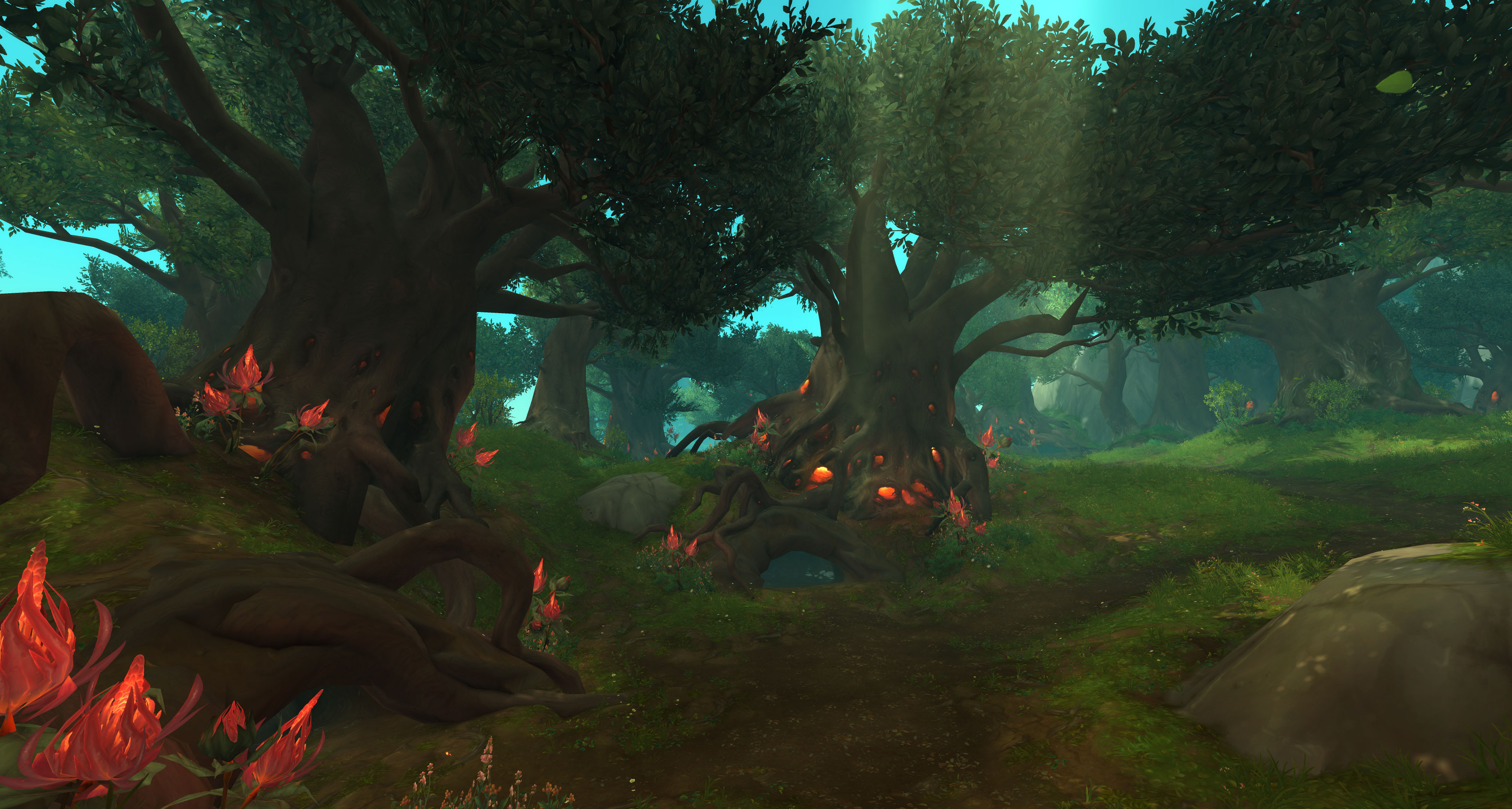 魔獸世界》一直都有蜘蛛類型的生物存在,而這次我們把一整個區域都給了奈幽蟲族、蜘蛛型的怪,所以我們在想如果有這麼大區域的話,又希望大部分玩家都可以體驗這個區域,而不會因為恐懼症而有害怕的感覺被刺激到。