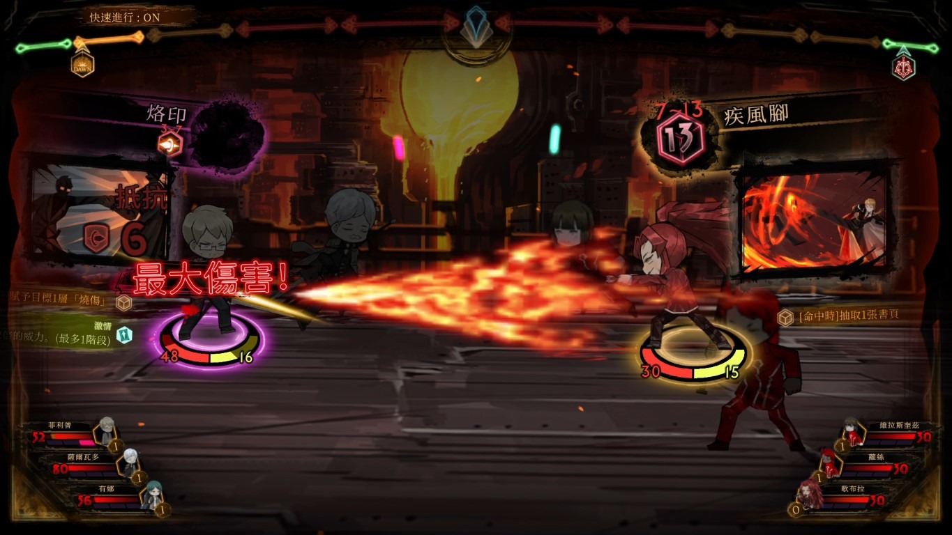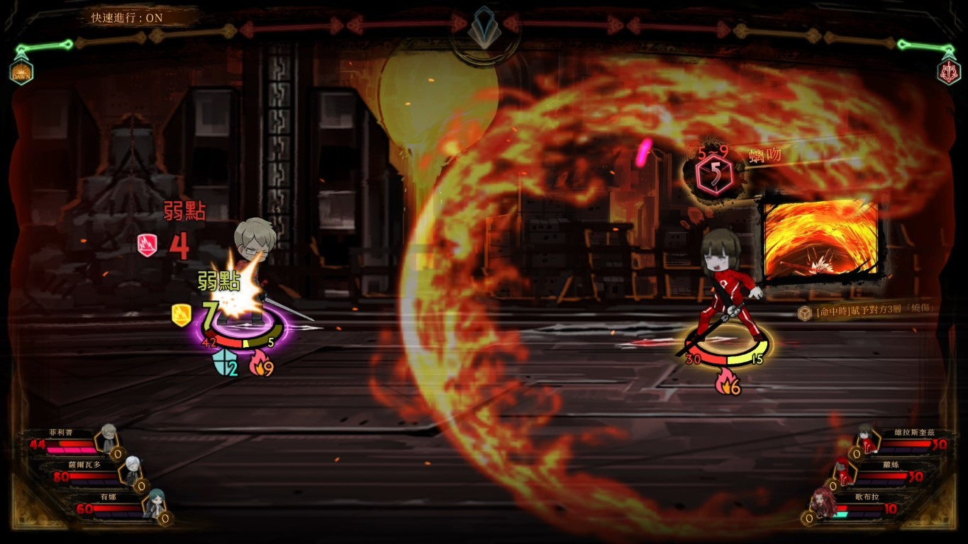 戰鬥中將互相擲骰子並按照數字大的一方順序行動。當彼此成為攻擊對象時,「合」將成立,這時再次擲骰子,數字大的一方在合中獲勝並將造成對方傷害。