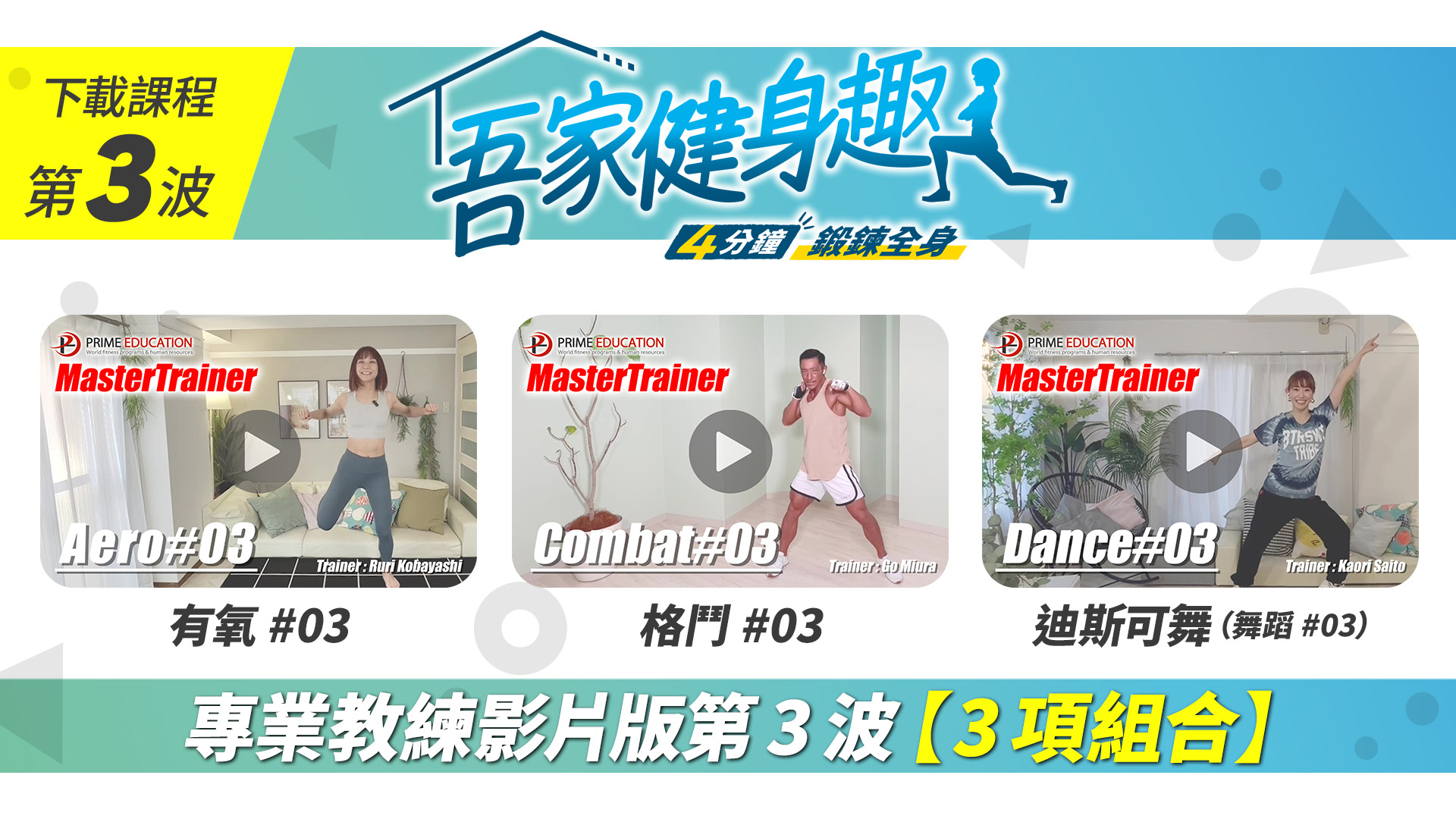 專業教練影片版第 3 波【3 項組合】:有氧 #03、格鬥 #03、迪斯可舞(舞蹈 #03)