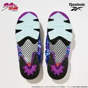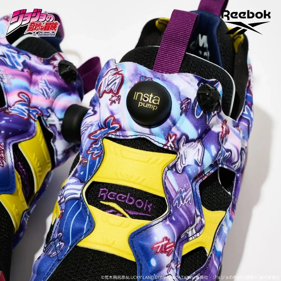》聯名鞋款,是藉由旗下最經典的 INSTAPUMP FURY 94 為基礎所打造。鞋款是以黑色搭配黃色為主體,表達承太郎服裝的意象。而充氣區塊則是藉由紫色搭配滿滿的「歐拉歐拉(オラオラ)」呈現劇中特色。除了以上部位外,腳後跟拉環也可以看到下集預告中那經典的「To Be continued」字樣,搭配上兩組不同特色的鞋墊以及特色鞋盒,打造屬於星塵遠征軍的特色鞋款。