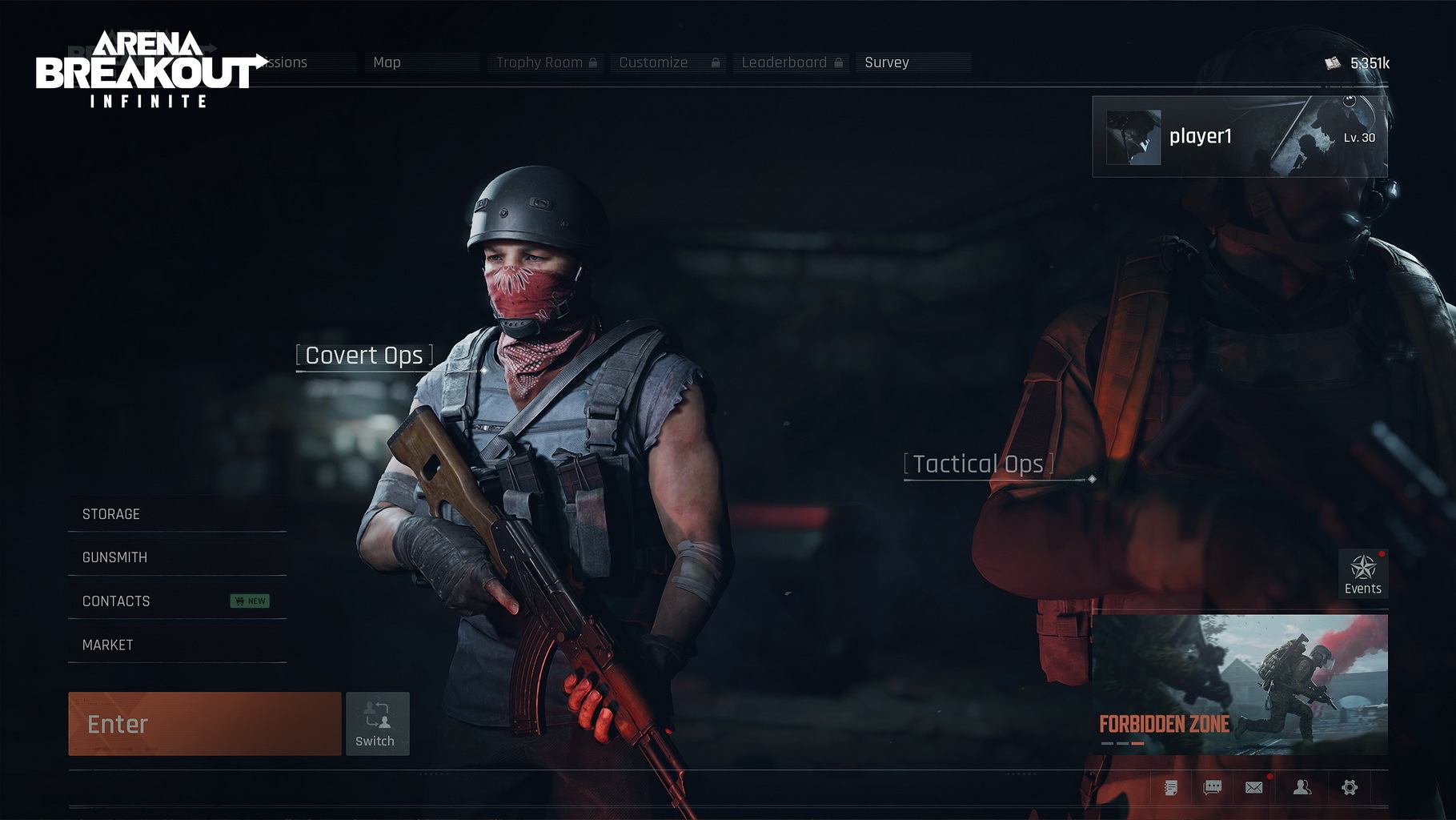 暗區突圍:無限》中,玩家將進入暗區,成為世上最致命的特遣隊員。作為一名受過高度訓練的軍事人員,前往高風險高回報的戰爭中的卡莫納地區,扣下扳機、尋找掩護、繼續前進、闖入戰場搜刮高價物品並致富,過程中要隨時準備好為生存而戰。