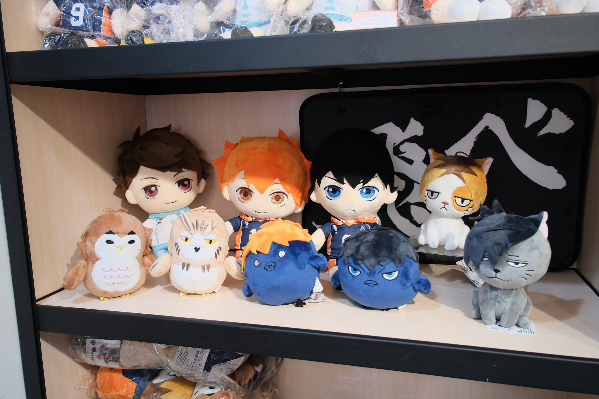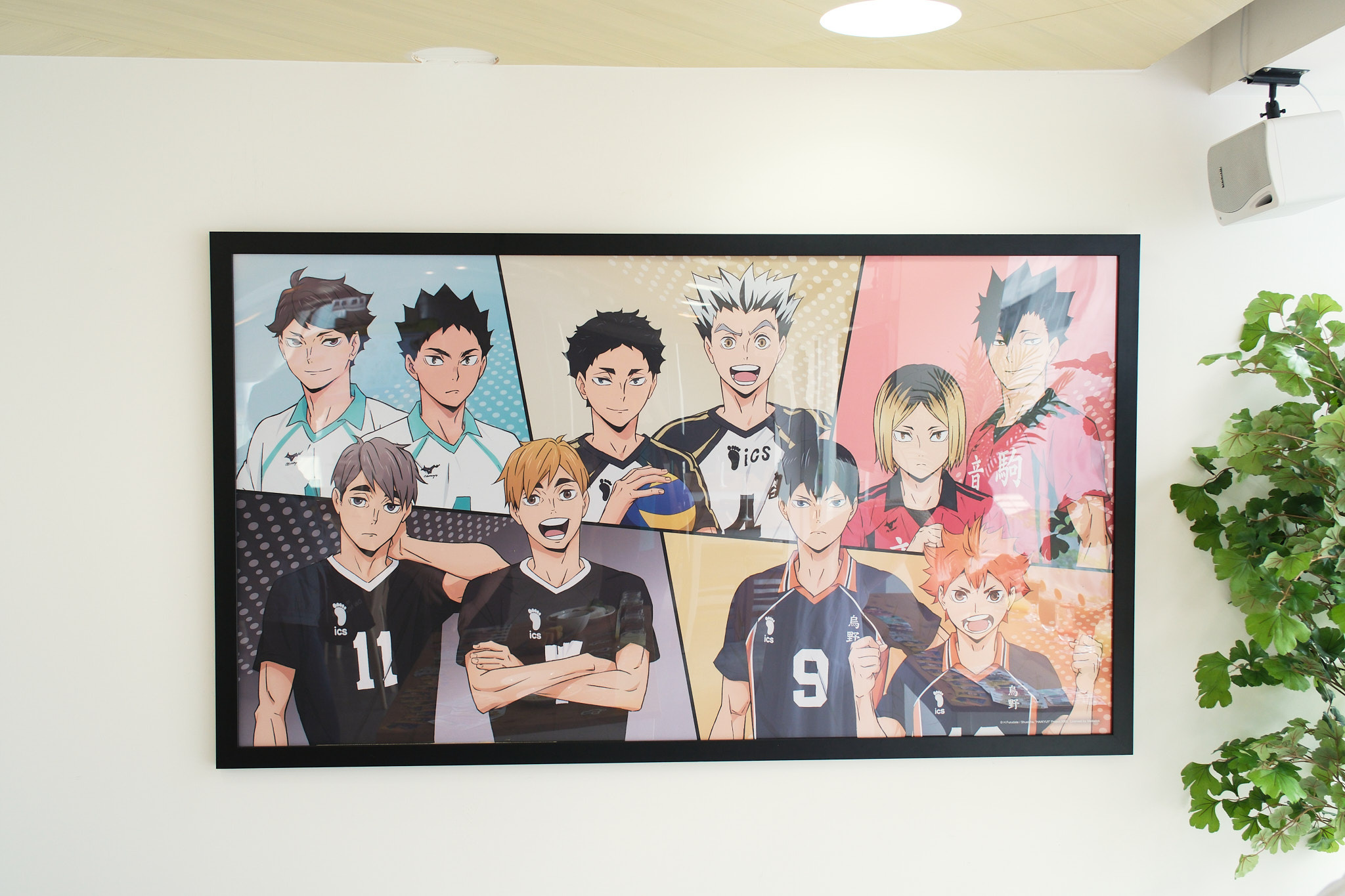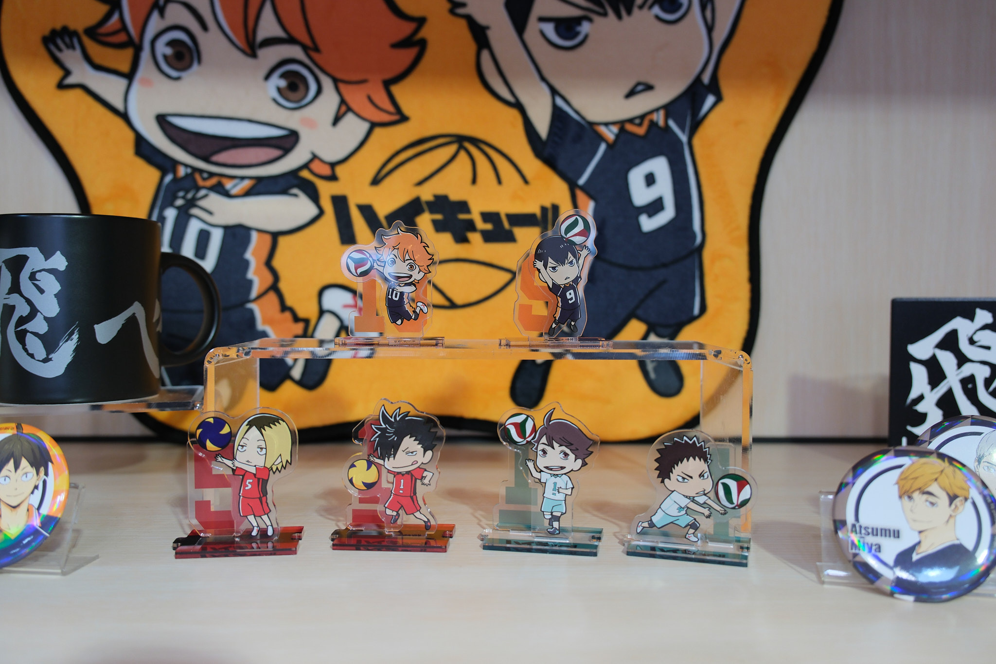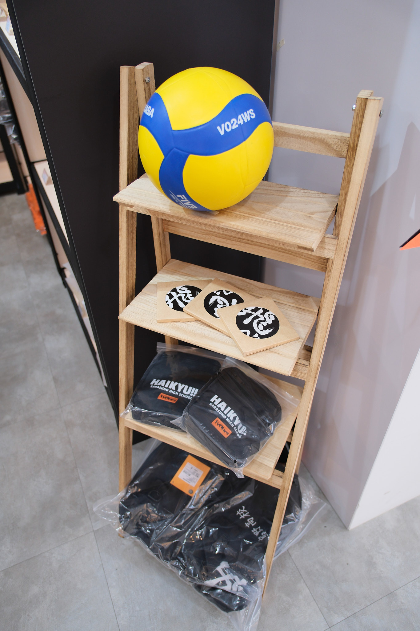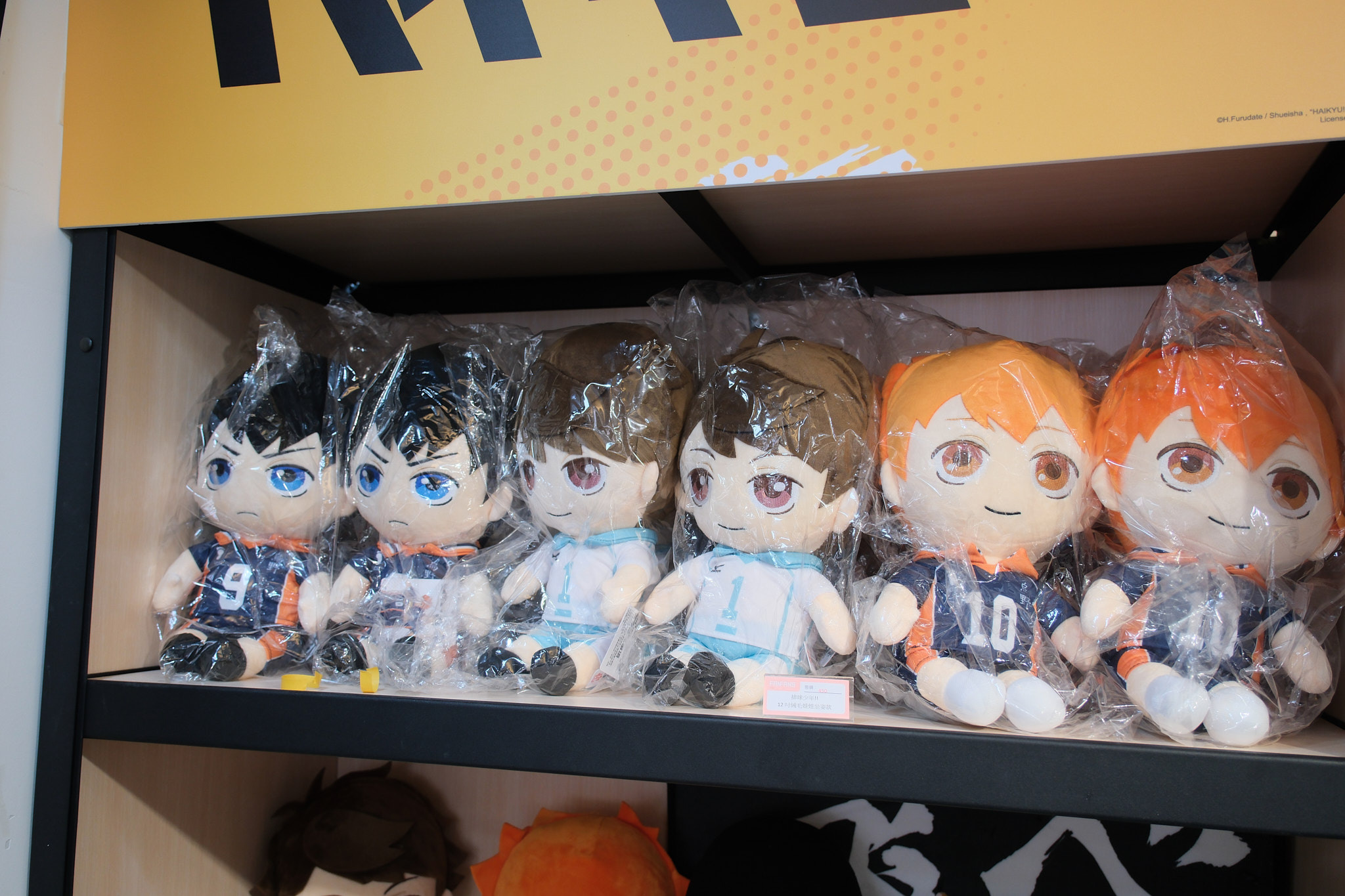 進到 FANFANS CAFÉ,就可以看到日向翔陽跟影山飛雄兩位主角在門口迎接各位。接著往內走可以看到木兔、赤葦,一旁展示了歷來 FANFANS 粉粉推出過的排球少年系列商品;圍繞著整個店內的還有岩泉、及川、孤爪、黑尾,以及宮侑、宮治兩兄弟,並且在店內還掛上了各校的旗幟裝飾。另外,這次《