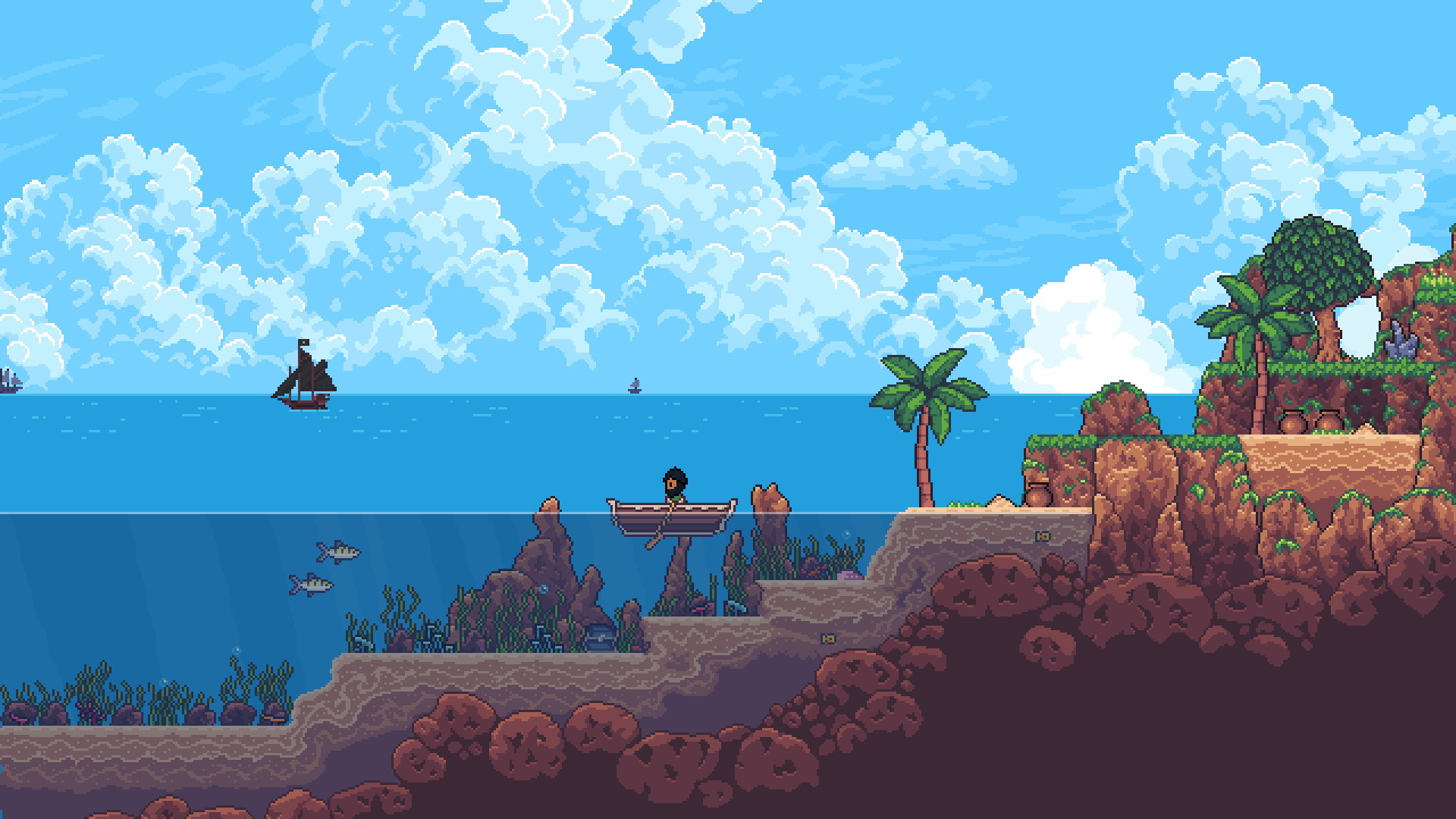 海洋波光》是一款開放世界海上冒險遊戲,玩家將成為令人畏懼的海盜船長。本作提供探索、建造、釣魚等玩法要素,玩家可以砍伐樹木、開採礦物和灌溉農作物等方式來收集資源,並升級船、僱用船員與你一起冒險、尋找寶藏。從寶藏尋找黃金,或是透過出售商品來賺取黃金,玩家可以藉此提升你的海盜聲譽。