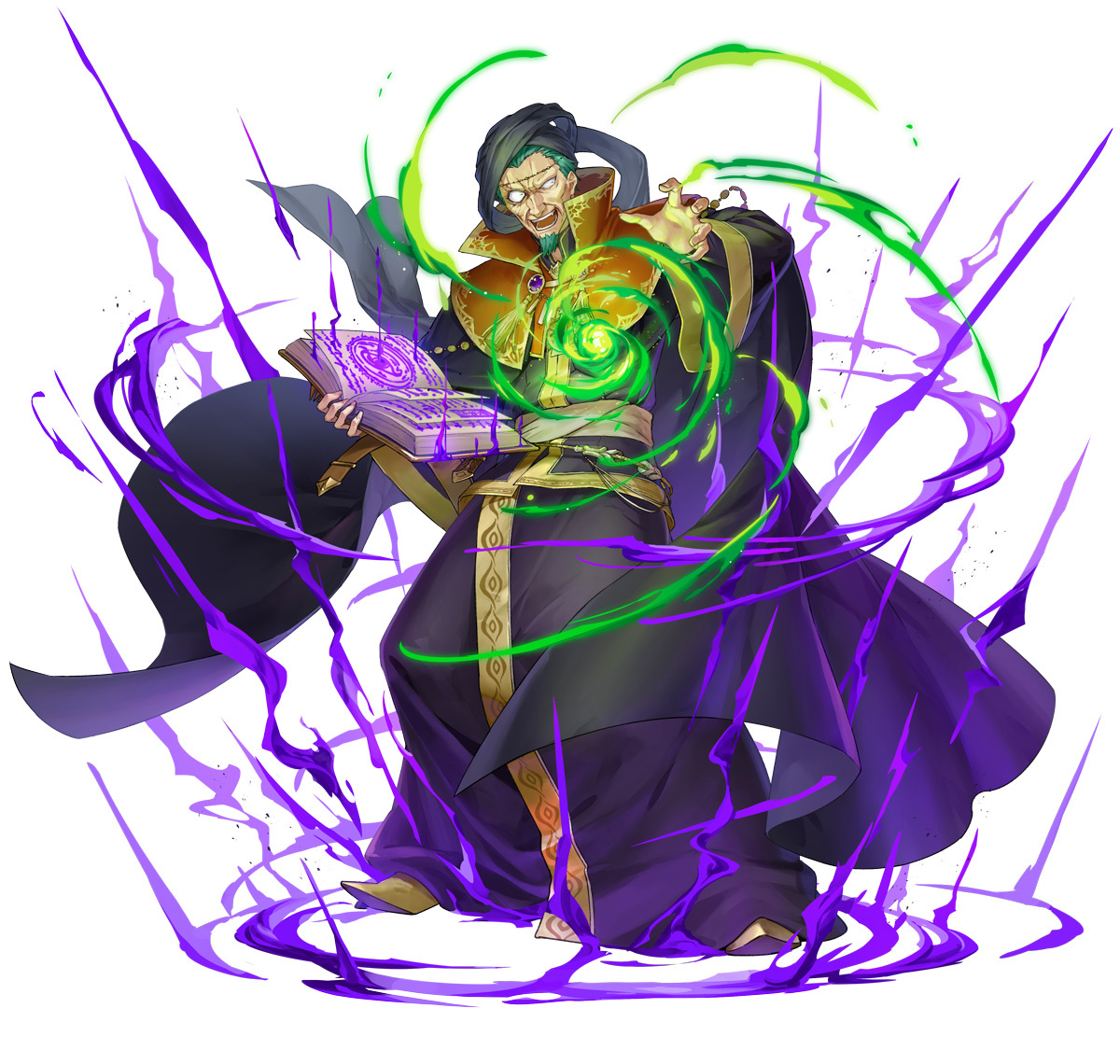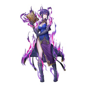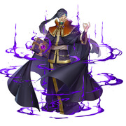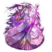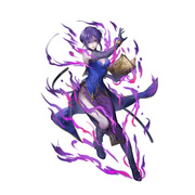 由自己發動攻擊時,或敵人攻擊射程為 2 格時, 戰鬥中,敵人的攻擊及魔防-6, 且敵人的攻擊及魔防再下降(下降數值為:自己在戰鬥開始時的魔防 ×20%),所受到的攻擊傷害降低 30%(範圍奧義除外),自身奧義發動計量變化量+1(若有多個相同系統效果,僅取最大值),且戰鬥中,魔防高於敵人 10 以上時,攻擊 2 次