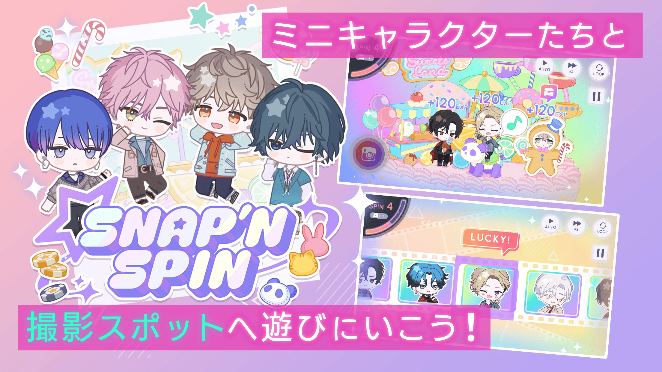 員工們的插圖與 BGM,一邊組成專屬的隊伍挑戰最高得分。另外,遊戲還提供名為「SNAP’N SPIN」的模式,可讓玩家強化解鎖「卡片故事」時所需的故事等級。