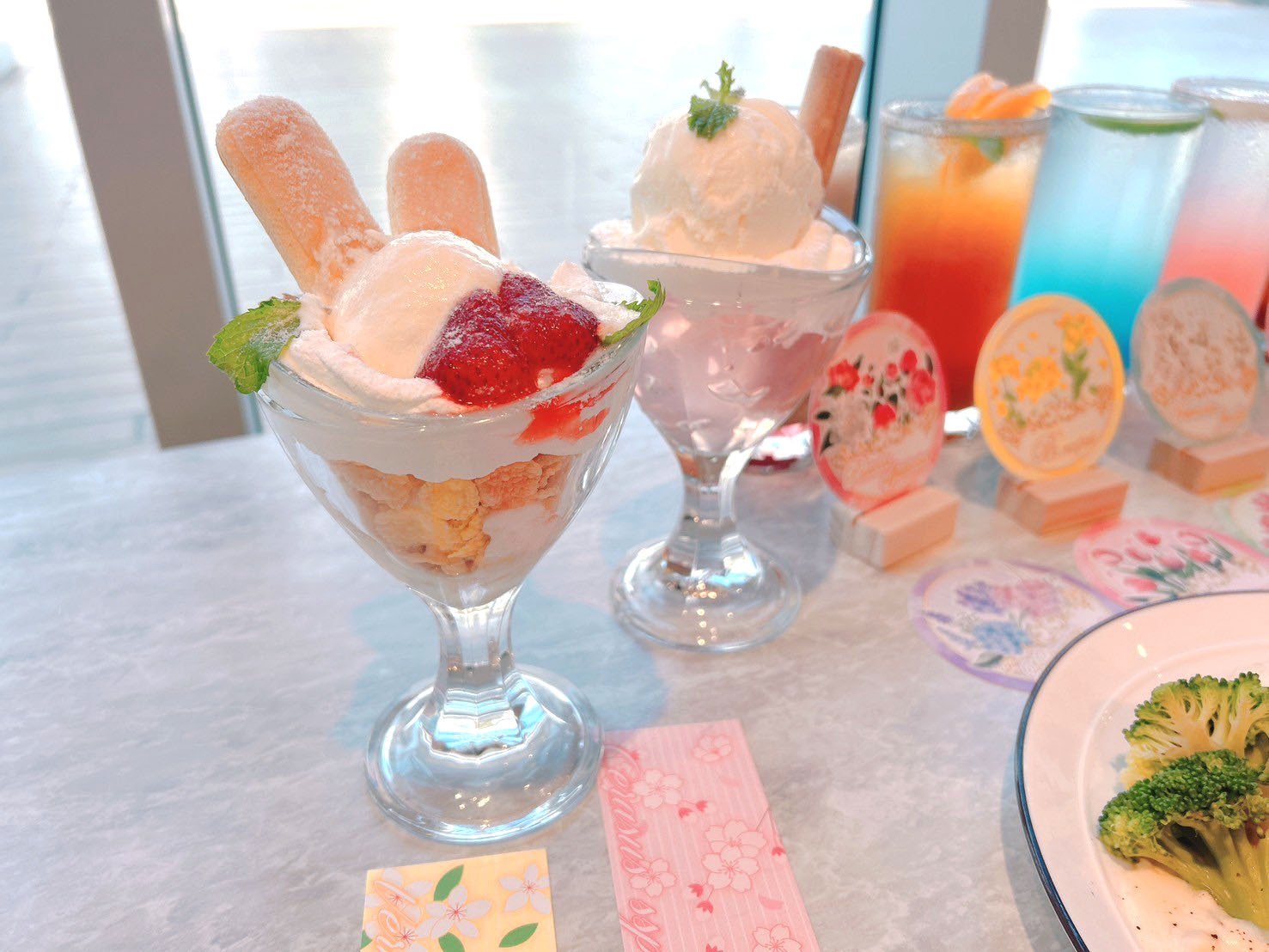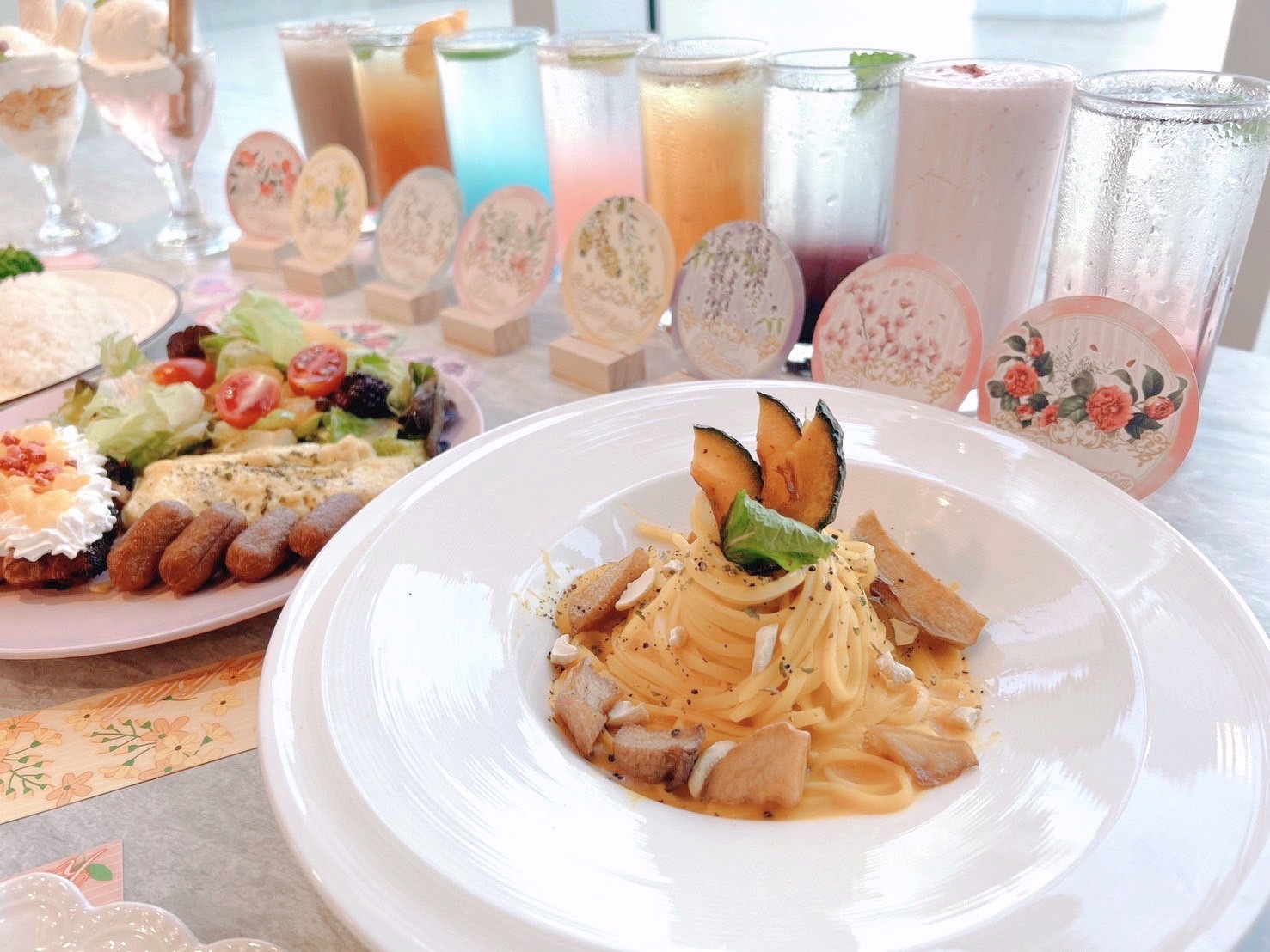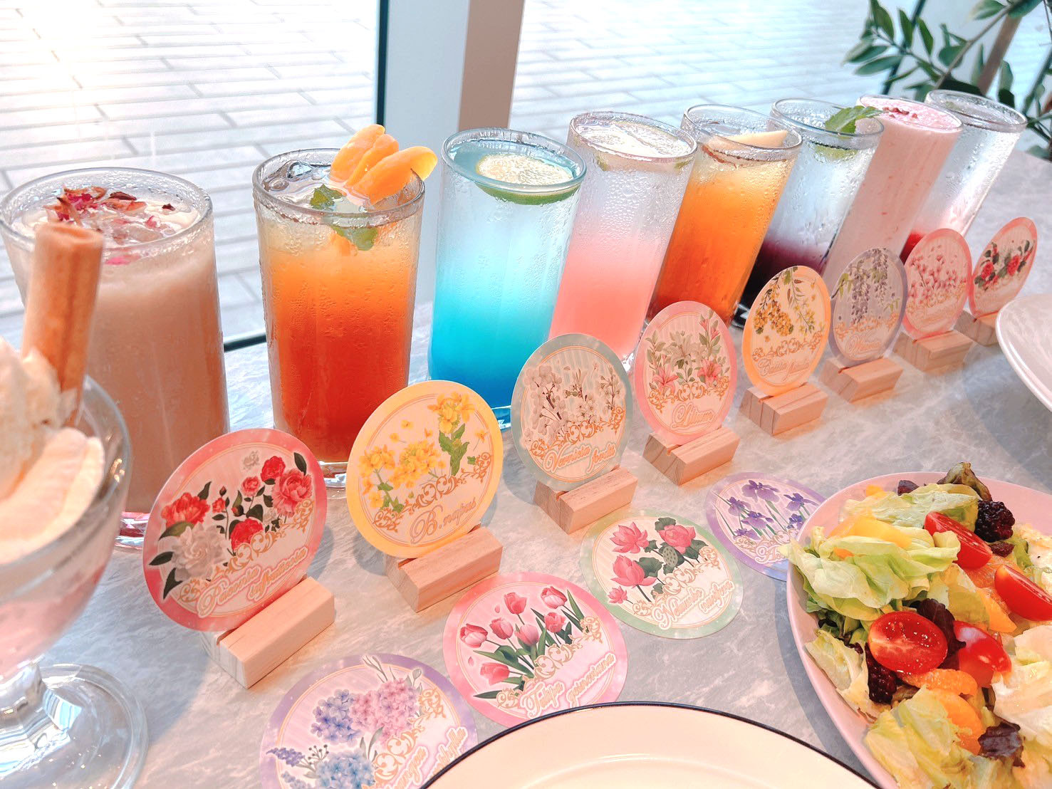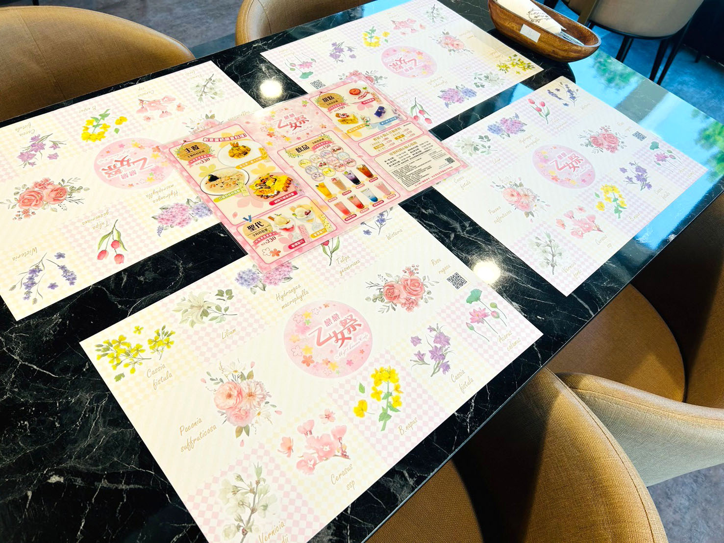 戀戀乙女祭」主題 Café,除了有以春夏花卉為意象設計的餐點:雪白油桐花、萌黃阿勃勒、多彩繡球花、淡雅紫藤花等等,點餐均附贈花卉主題特典,主餐、甜點、聖代也贈送精緻書籤,飲料贈送花意杯墊。