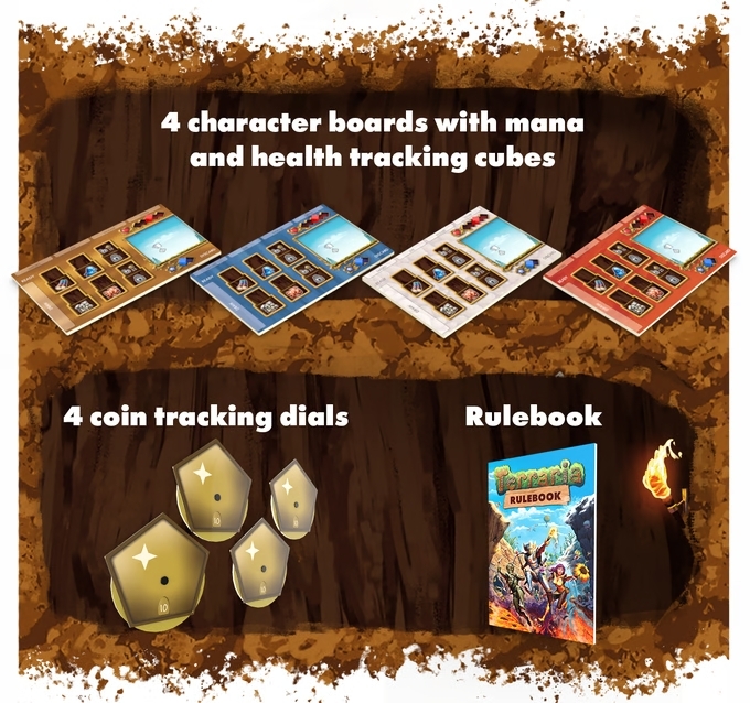 泰拉瑞亞》改編桌遊將是一款 1 至 4 人合作冒險遊戲,每場遊戲約 120 分鐘;以簡單的牌組建構為核心和靈活的行動系統,玩家可以選擇自己的遊戲風格,在沙盒世界中體驗挖掘、戰鬥、探索和建造。同時,官方釋出、收錄了由 Blake Robinson Synthetic Orchestra 新創作的《