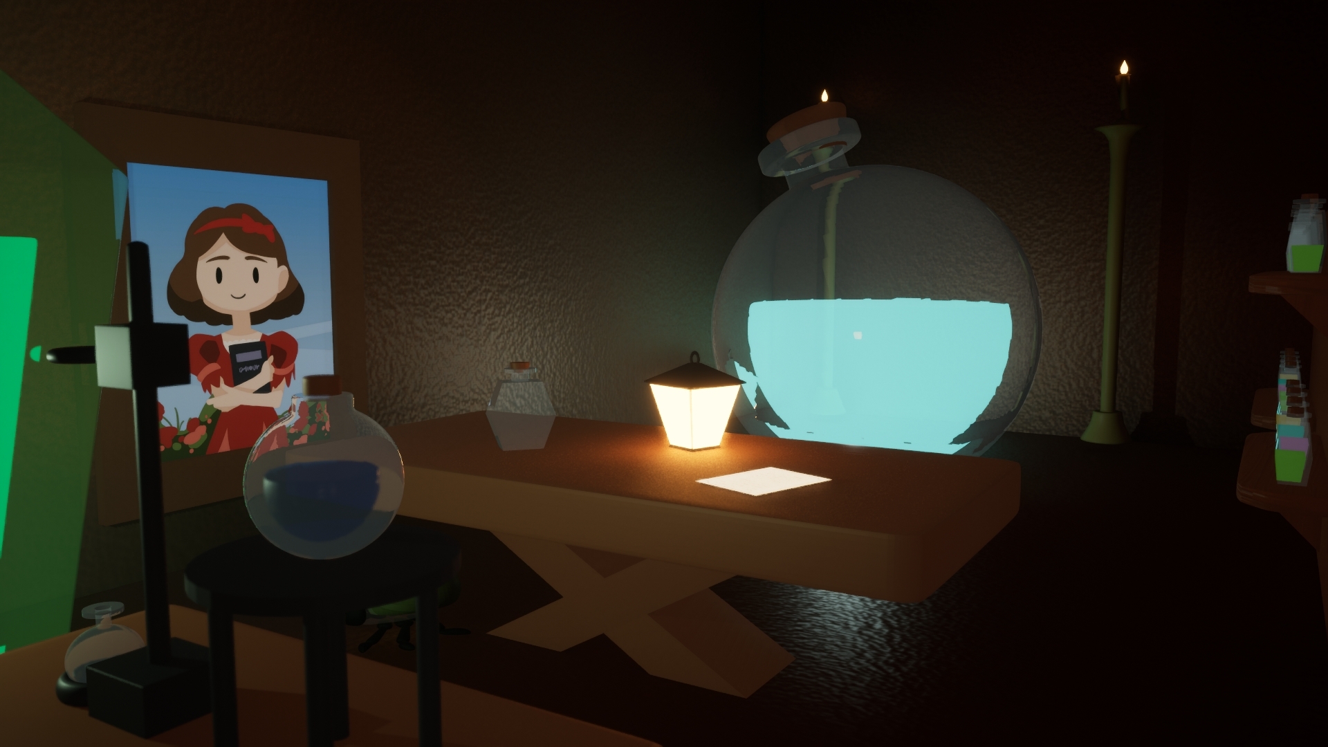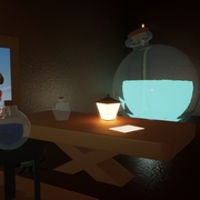 《鏡子裡有稜》製作時間約一年半左右,期間內遇到比較困難的點大概是在關卡與劇情的融合度上面會比較難去安排關卡內容,因為是設計成解謎遊戲,玩家未必會照著設計者預先設想流程遊玩,在劇情設計上必須要能夠讓玩家能過跳過某部分的劇情或是對話也可以玩的流暢。