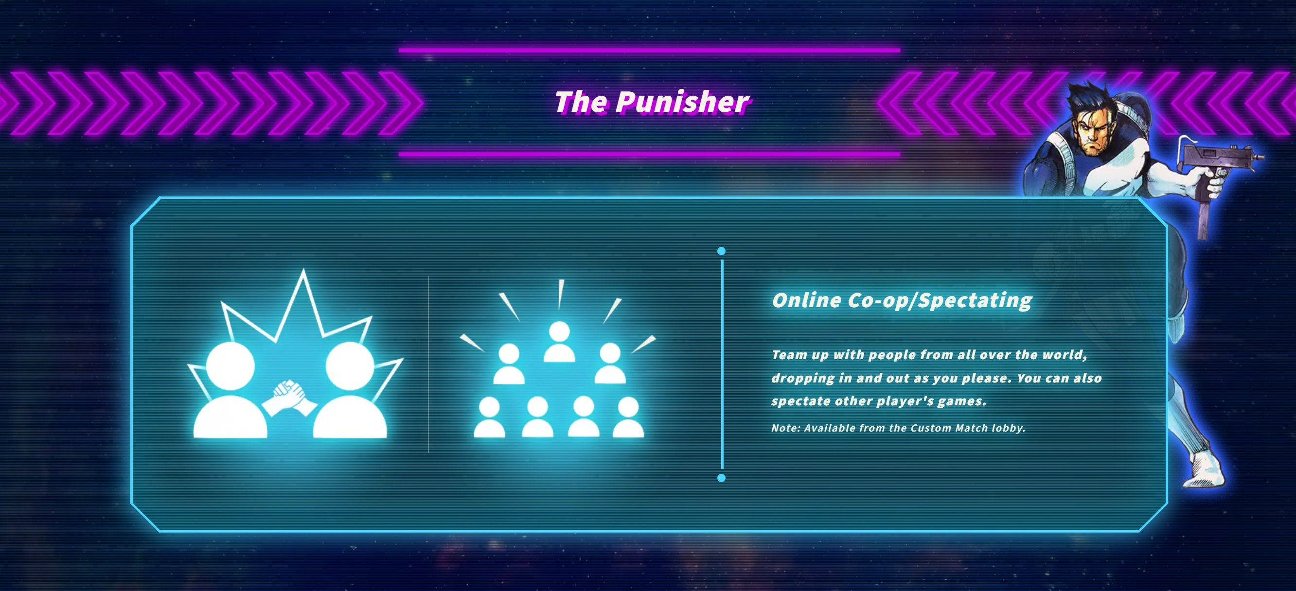 Marvel vs. Capcom 格鬥合集:大型電玩經典》讓永恆的傳統格鬥遊戲系列經典復活,並為 Capcom 的 粉絲、對戰格鬥遊戲愛好者、漫畫和超級英雄粉絲,以及對以上感興趣的所有人,帶來多樣化的標誌性角色、強化的功能以及競技性的遊戲玩法。無論是想重溫昔日感覺或是首次接觸這些經典遊戲的各代粉絲,都能共同慶祝 Capcom 的傳奇格鬥遊戲系列回歸!
