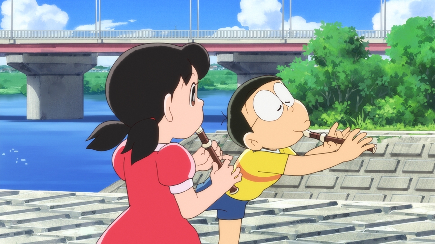 電影哆啦A夢:大雄的地球交響樂》裡,大雄一行人必須透過吹奏音樂,來對抗試圖消除音樂的可怕生物,因此,哆啦A夢使用道具「音樂家執照」為眾人分配適合的樂器,結果大雄被分配到最平凡、也是他最不擅長的直笛,讓他大喊「不公平」。談到為什麼把直笛作為故事的起點,今井一曉表示,因為這是這是每個人小時候最常接觸的樂器,他希望可以藉此告訴那些不擅長樂器,或是對音樂不感興趣的孩子,「直笛和音樂教室的前方,有著很寬廣的世界喔。」