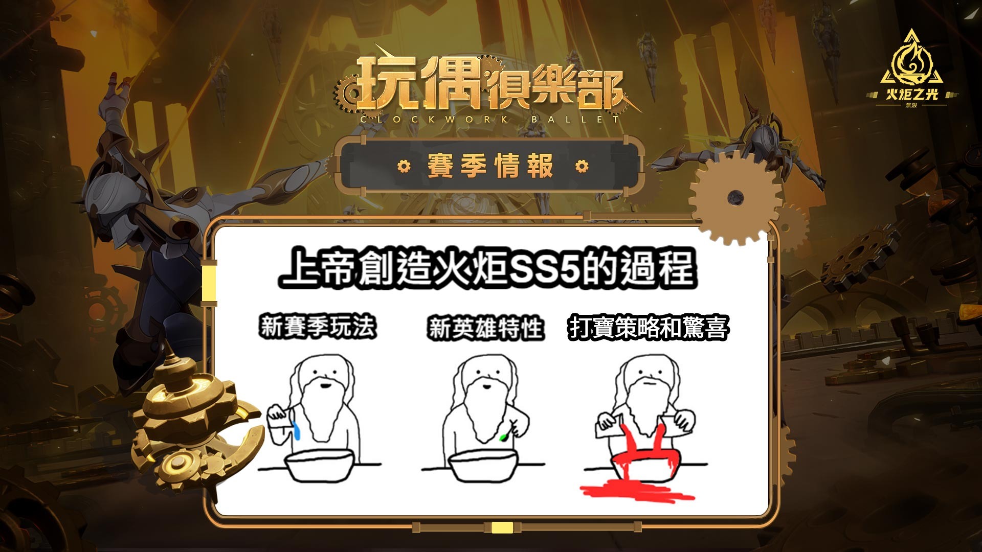 火炬之光:無限》官方粉絲團也在近期陸續釋出許多新賽季資訊,從最初的「齒輪」、「噠噠噠」到最後的「超多打寶策略與驚喜」,這些資訊到底代表什麼意涵呢?玩家們可在前瞻之前重新複習,並在直播中看看自己預測到多少資訊唷!