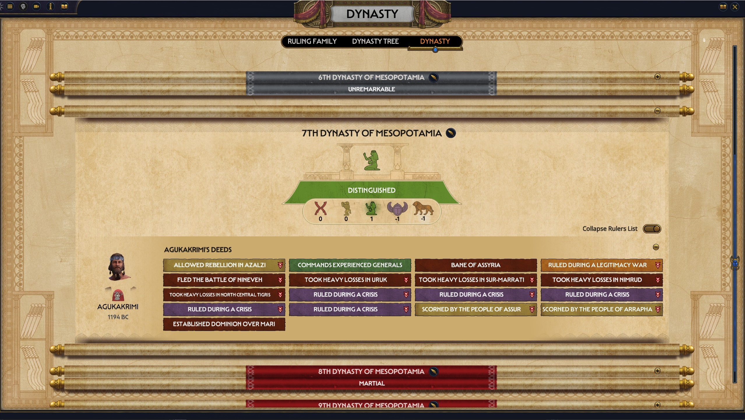透過全新的王朝系統建立自己的族譜,讓帝國歷久不衰。克服生死的束縛,透過繼承王位來延續偉業。王室聯姻、暗殺行動、英勇戰死疆場和統治者的晚年將左右王朝的興衰,決定王朝是否能傳承後世、永垂不朽。