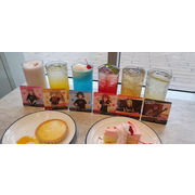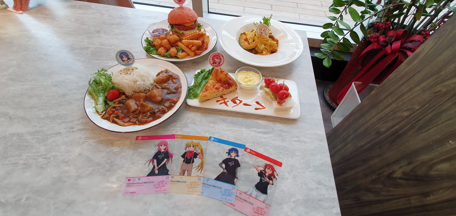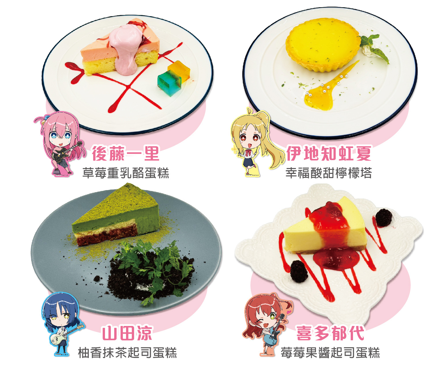 劇場總集篇 孤獨搖滾!》主題 Café 推出「團結 Band」後藤一里、伊地知虹夏、山田涼、喜多郁代四位角色餐點,均依角色量身打造特別的概念,包含以山田涼與喜多郁代為發想的主餐「請我吃美味咖哩」及「酪梨奶油乳酪串與西班牙烘蛋佐荷蘭醬」。本次飲料菜單更加入了以伊地知星歌為發想的好孩子蘋果汁,以及廣井菊里的啤酒風味氣泡飲。