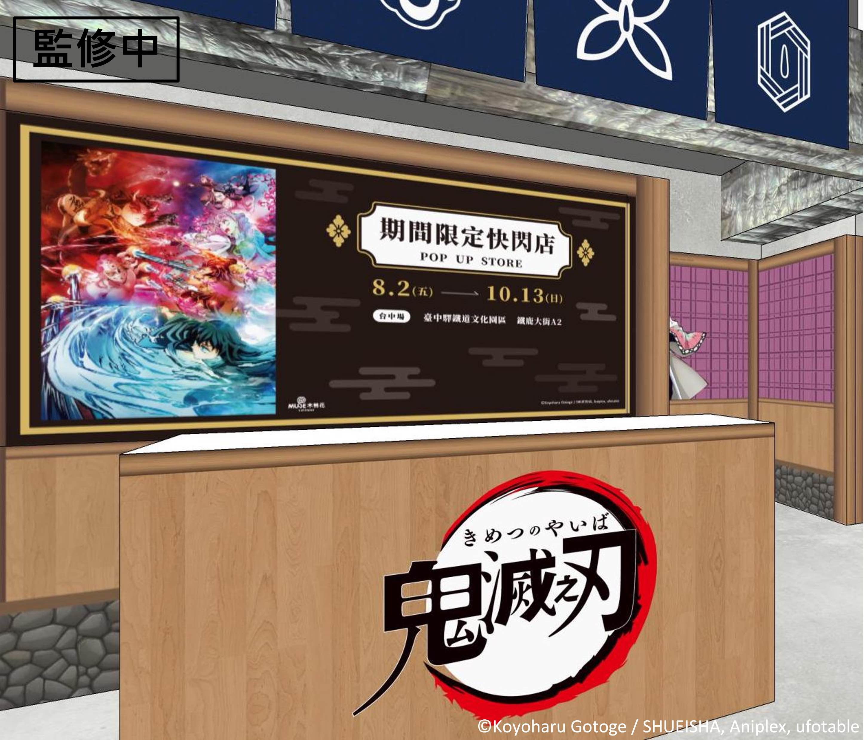 《鬼滅之刃》宣布將自 8 月 2 日起至 10 月 13 日為止,在臺中驛鐵道文化園區鐵鹿大街 A2 推出快閃店的消息。現場將有「九柱集合」、「刀匠村大扭蛋」等多組打卡點,並且推出「雙人立牌」、「炫彩徽章」等週邊商品。