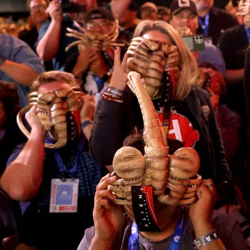 不管是預告片或電影海報,都可見到異形對著人類「抱頭」,