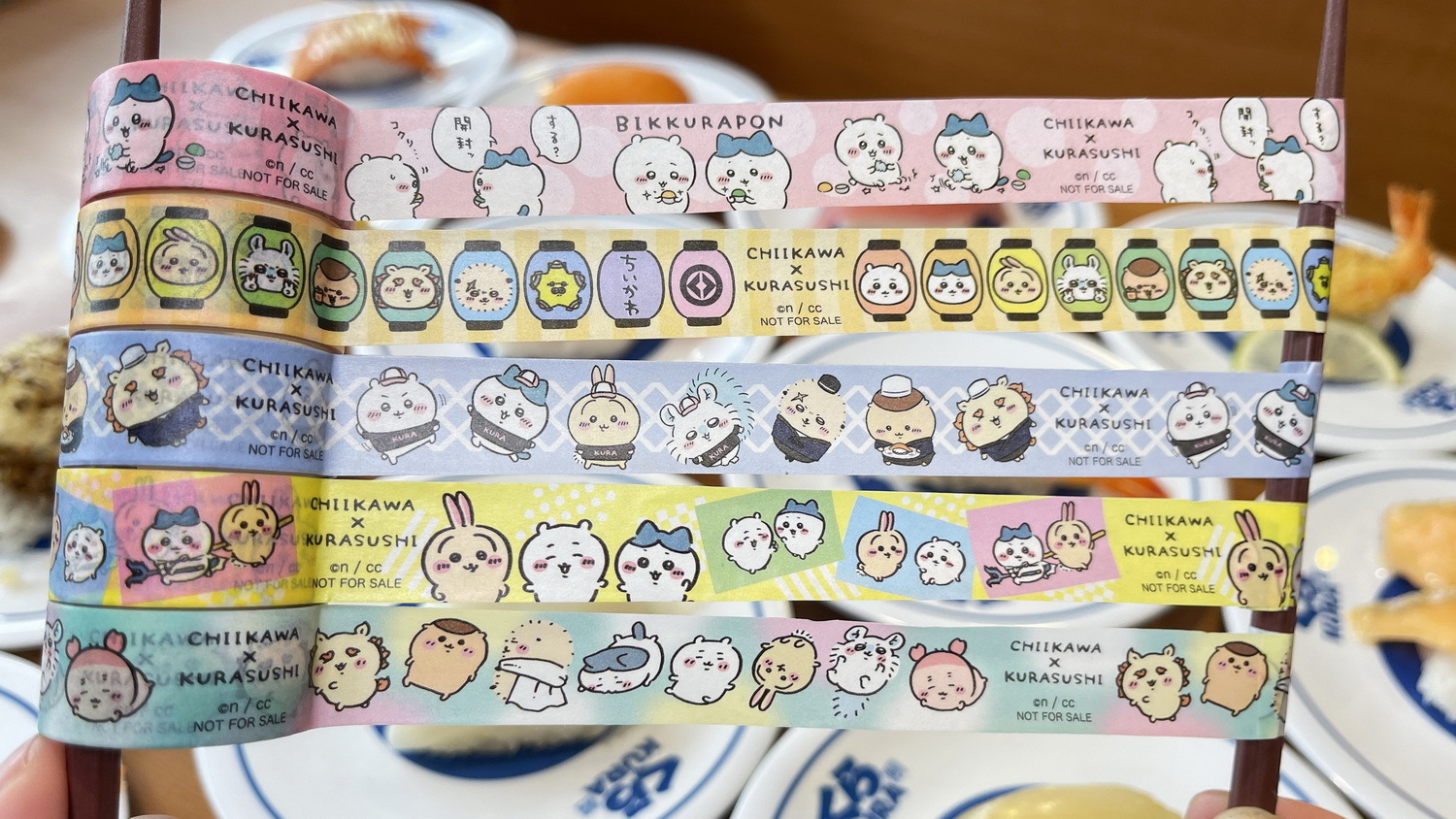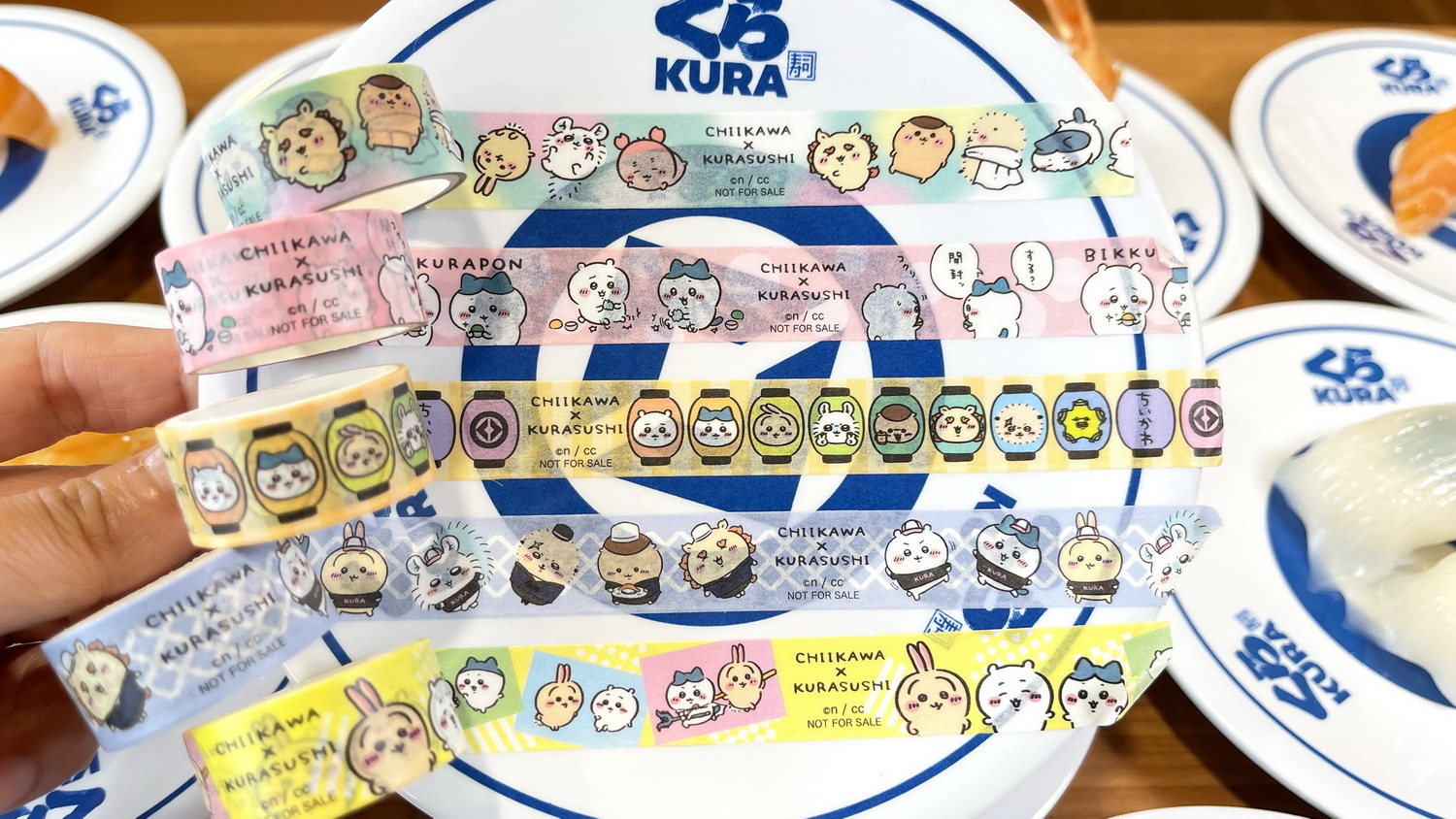 吉伊卡哇與朋友們在藏壽司大快朵頤的可愛模樣超萌呈現,5 款「紙膠帶」更是融入藏壽司經典特色,角色們化身藏壽司小小店長,認真工作的身影超迷人,