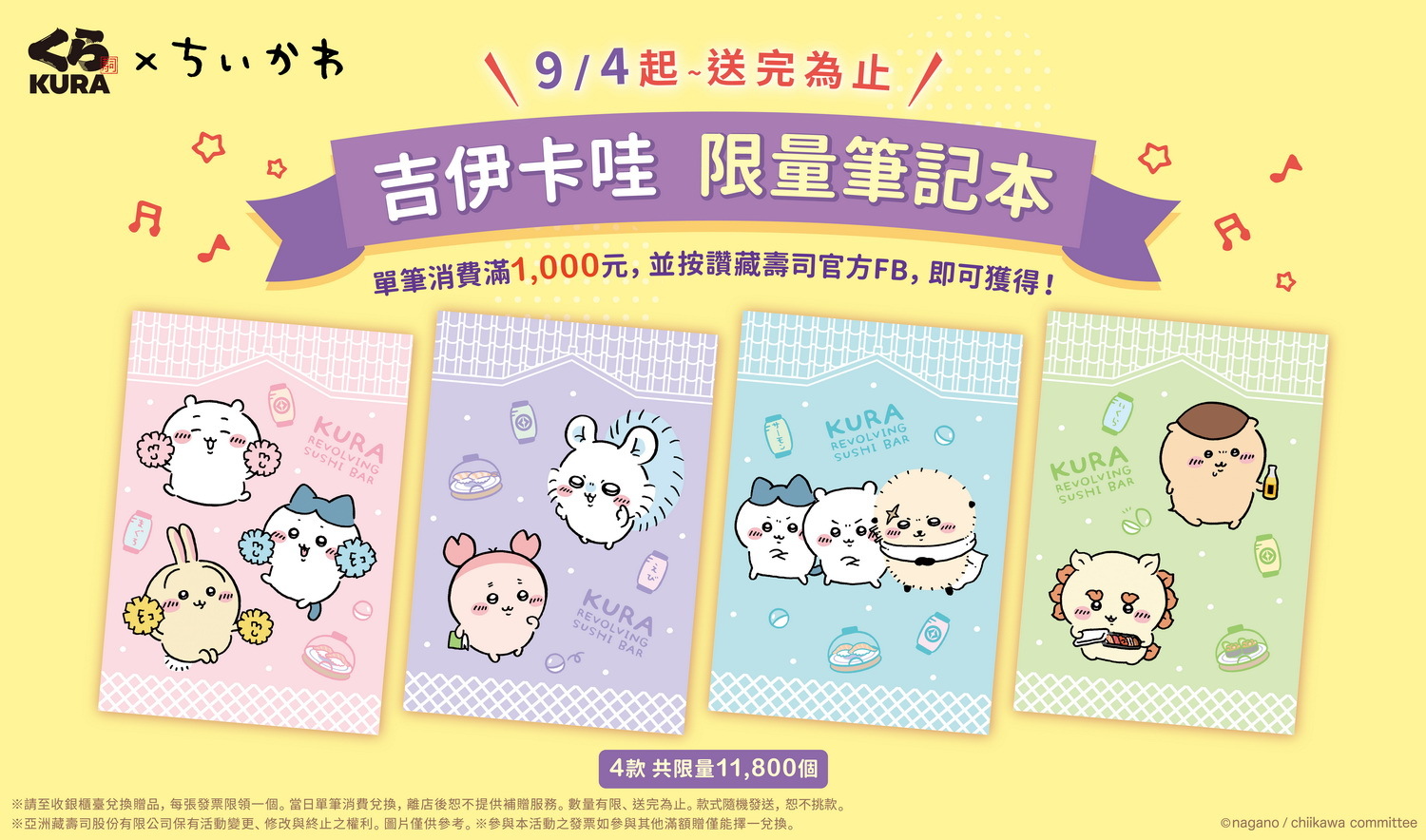 吉伊卡哇限量筆記本」,只要消費滿額並完成指定任務即可免費擁有註,筆記本融入藏壽司經典土藏屋造型元素,