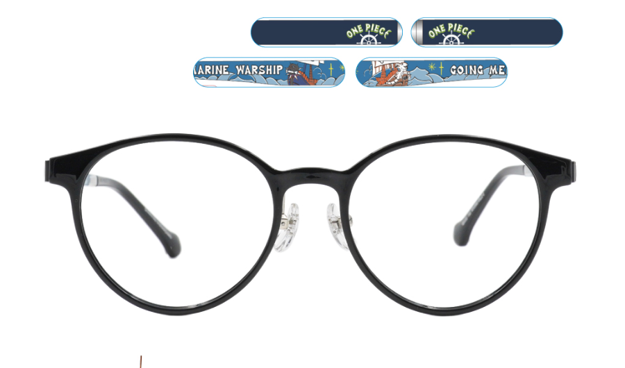 航海王聯名鏡框,在鏡腳上有著角色特點、劇情代表物的限量雷射鑄件:無論是魯夫的草帽、騙人布的彈弓、索隆的武士刀或娜美天氣棒,就算想直接在鏡腳鑄上他們的名字也可以。不只如此,還可在鏡腳上選擇梅莉號、船錨等雷刻花紋;在鼻墊與鏡腳套等細節處,也能選擇惡魔果實或骷顱頭等式樣。