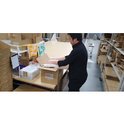 隨著正式進入 amiami 的倉庫,也由 Ami Promotion 株式會社物流企劃組的係長:鈴木先生帶領我們了解更多的進出貨以及包裝細節。位於東京旁邊神奈川縣的 GLP 川崎物流倉庫,除了 Ami Promotion外也有其他的公司進駐,而目前 Ami Promotion 所使用的倉庫為該棟的一樓一半、二樓整層以及三樓的一半,主要工作區域在一樓和二樓,通過電梯和貨車進行貨物運輸,並與物流公司協作以流暢的進行貨運的部份。