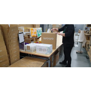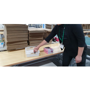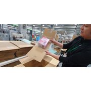 自動撿貨系統會根據掃描條碼和電腦指令進行操作,並通過系統確保準確性。自動捆包機會根據商品尺寸進行調整,確保運輸過程中商品不會受損。每個包裝完成後都會貼上發送單,準備出貨。「我們的自動化系統包含了訂單和客人資料的確定機制,確保出貨的精準性。」鈴木先生說:「而自動捆包機對於固定尺寸的商品非常有效,但對於比較複雜、包含不同尺寸商品的訂單內容或大量訂單仍需要人工處理。而這裡的捆包方式是防水和最佳發送方法,雖然每天的數量不太一定,但最多的時期大概一天會從這裡出貨包裝約五千件商品。」