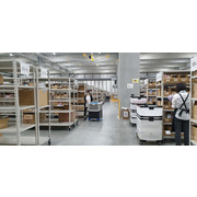 在倉庫裡可以看到員工們手上拿著機器,並根據訂單的內容將商品揀選進籃子裡。通常這個時間(平日下午三、四點的時段),二樓大約有 20 名左右的員工同搭配著機器時在進行檢貨的工作。目前,他們的倉庫總計大約有 130 名員工,主要負責商品的進出貨、揀貨、庫存管理、揀貨、打包裝箱等工作。