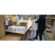 倉庫的三樓主要是長期庫存、紙箱的備品保管以及國際發送的臨時待機場所。由於國際發送有每天的量上限,超過部分需要等到隔天寄送。