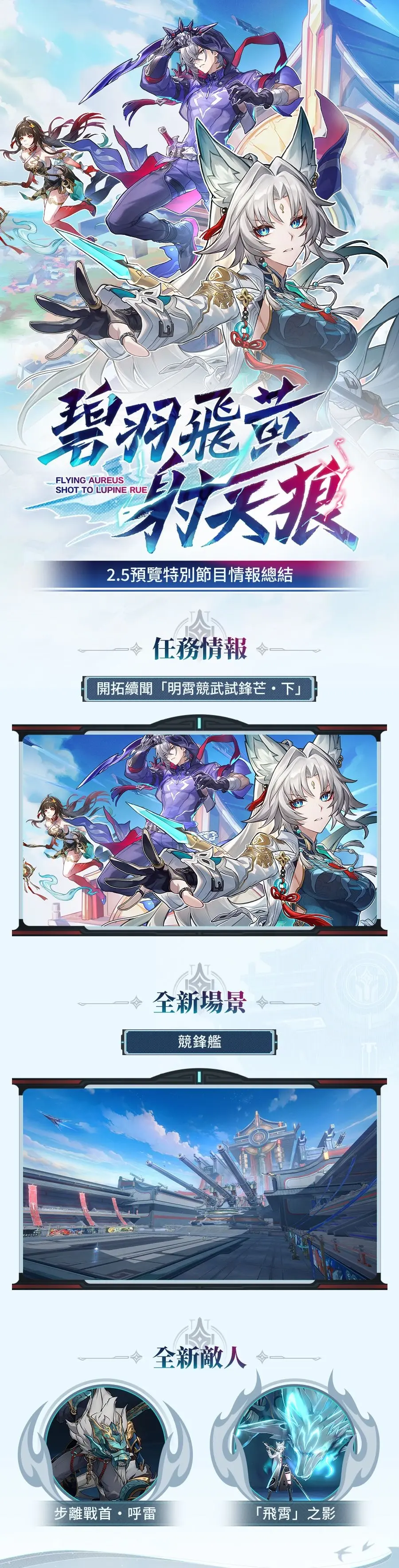 》2.5 版本「碧羽飛黃射天狼」預覽特別節目於 8 月 30 日播出。官方表示,《