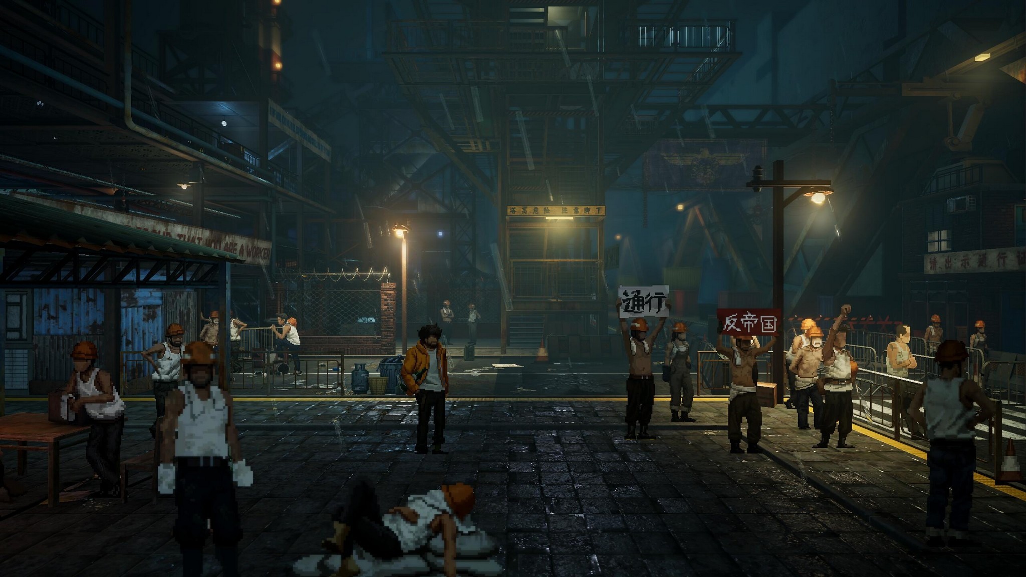 官方表示,遊戲利用 3D 的場景與 2D 的像素人物構築出了現代與復古對比強烈且獨特的美術風格,擁有風格多變且設計了大量可自由探索的場景,如破敗停產的鋼鐵森林工廠、淤泥遍地建於水上的沉船碼頭、馬島傳統和帝國文化交融的豬籠城寨、熱鬧喧囂人來人往的舊城區。