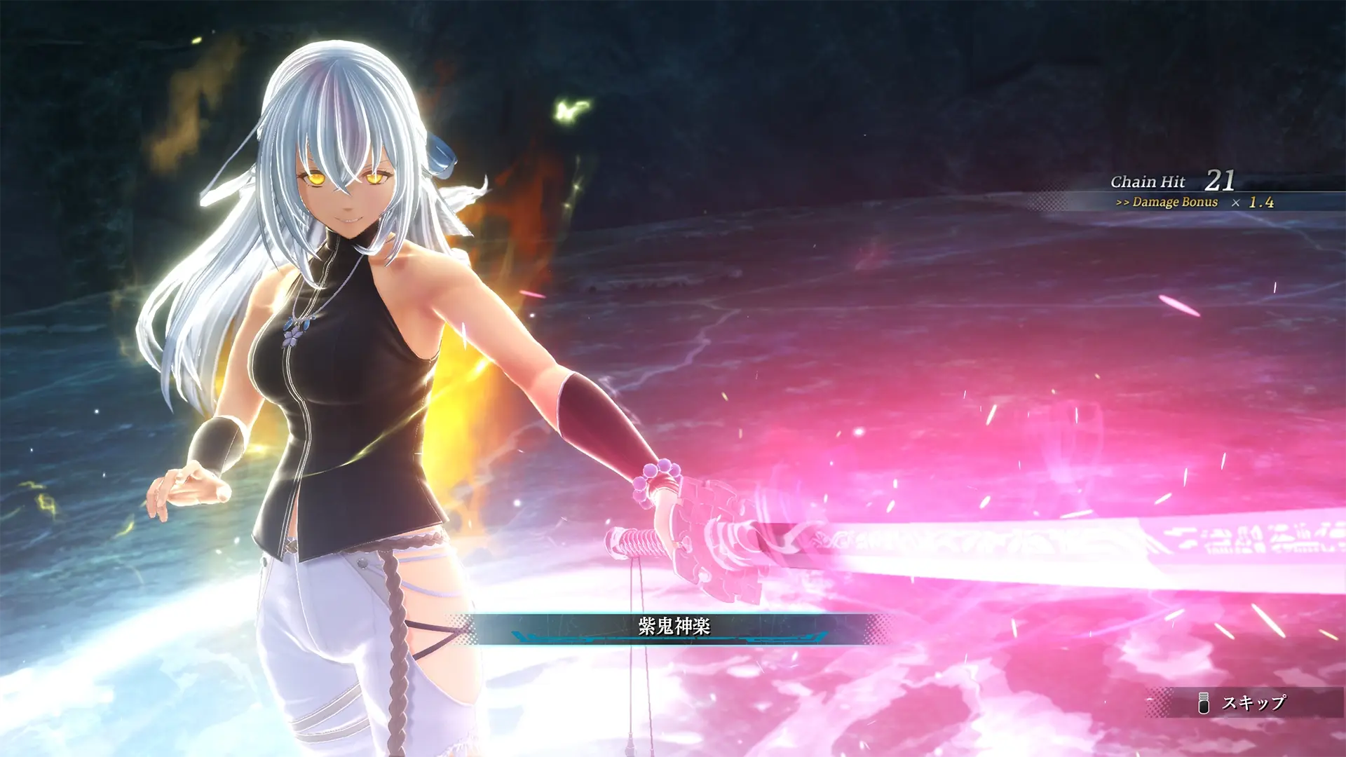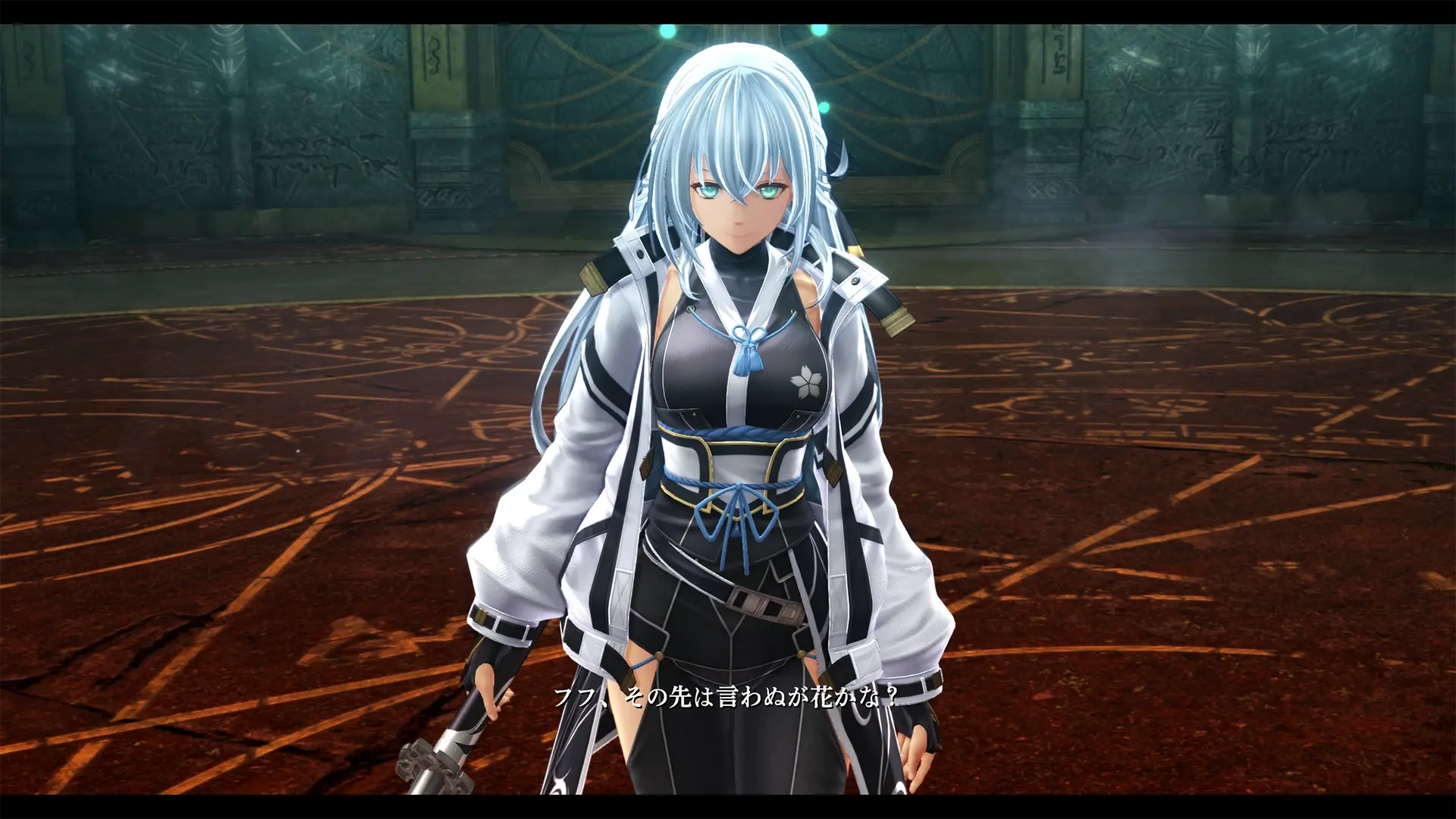 她所使用的武器是被稱為《曉鴉》的漆黑太刀,