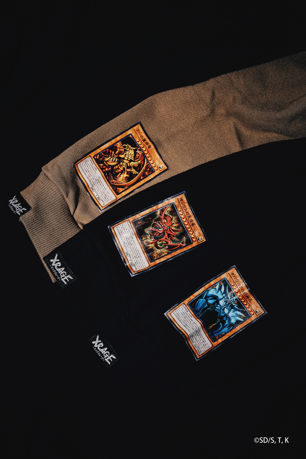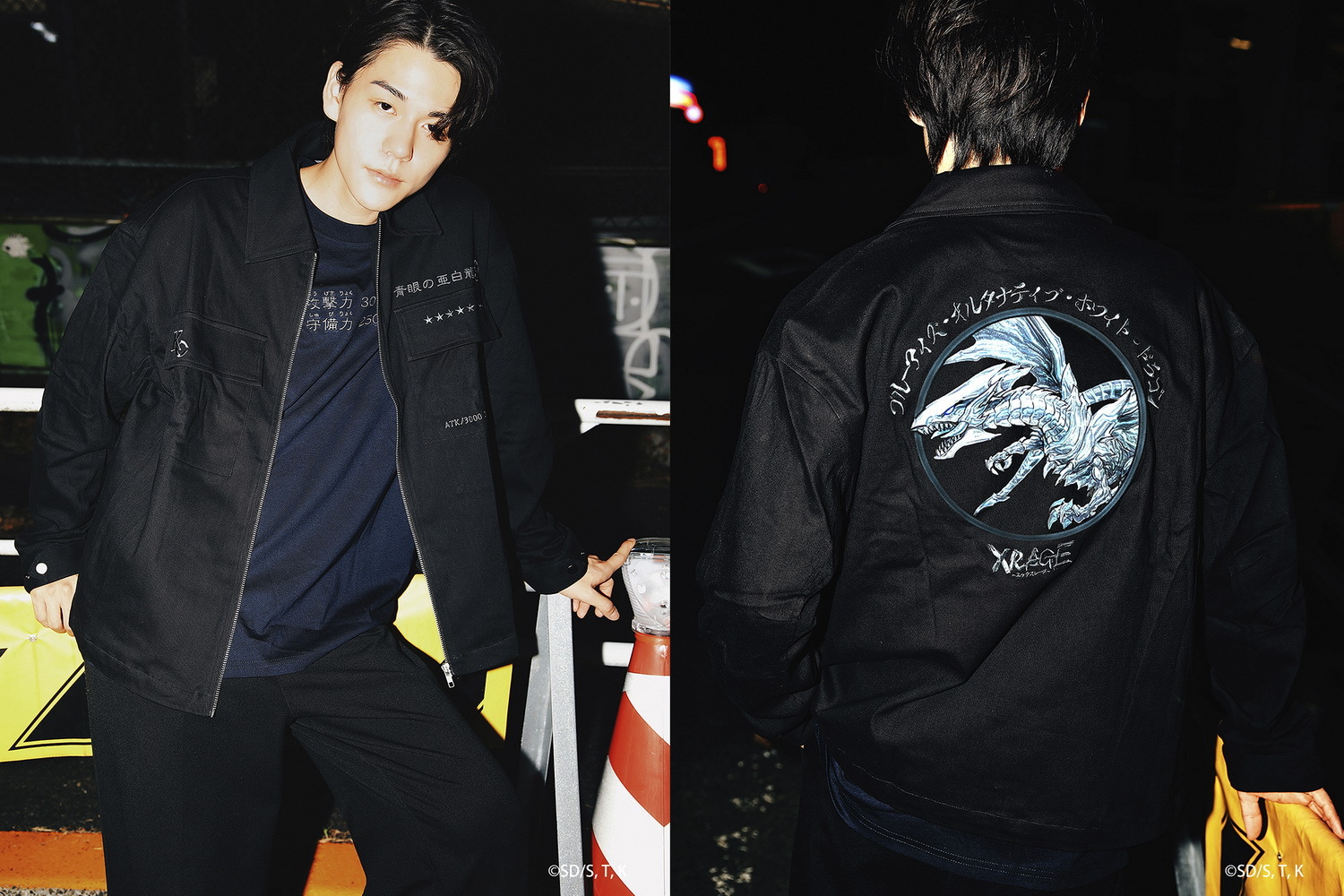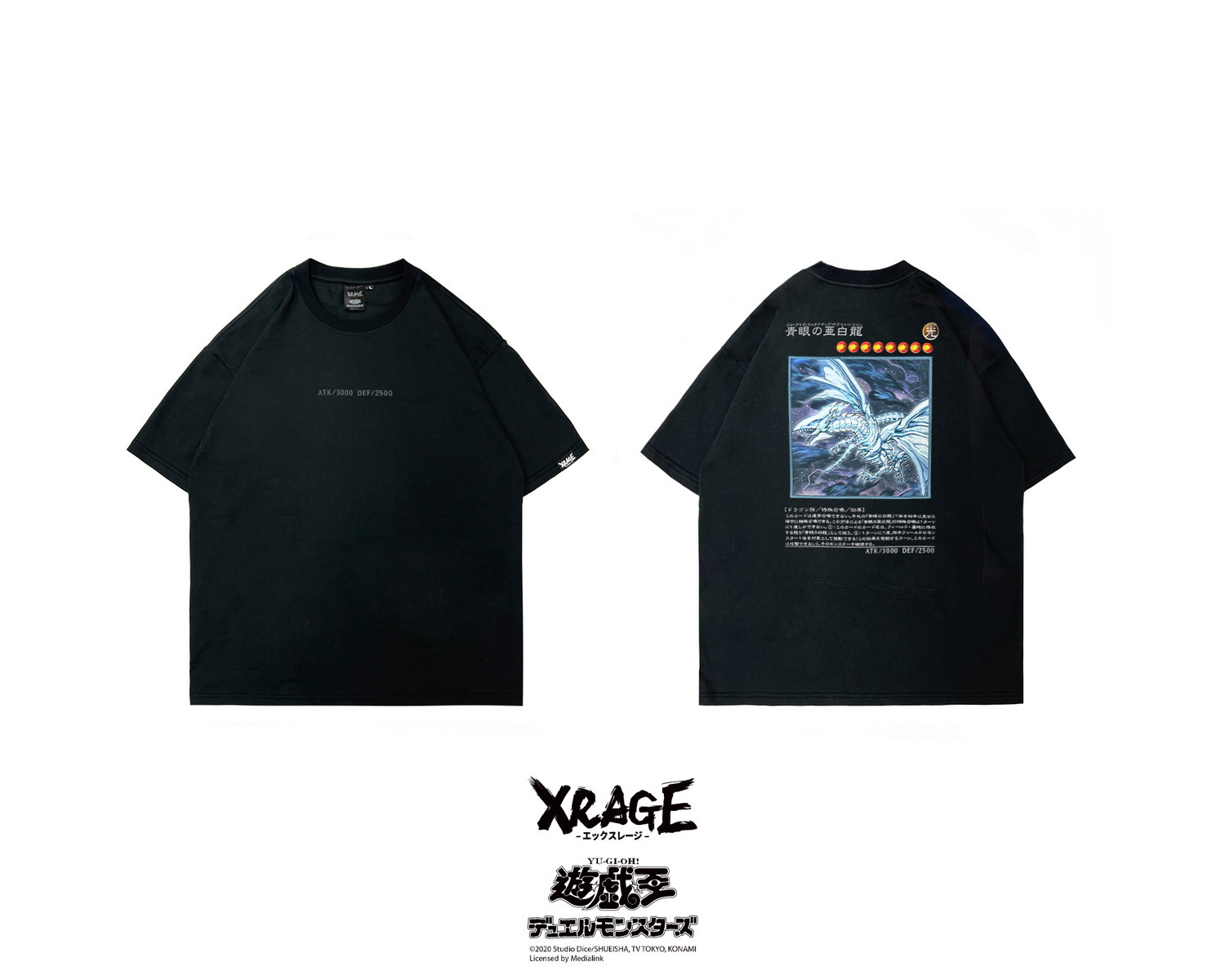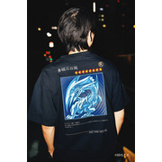 XRAGE 本次聯名以「遊戲卡牌」為主題,將讀者一看就懂的「梗」與服飾融合,推出以多代經典卡牌為核心設計的二十多樣商品,其中最具矚目的莫屬本次獨家設計黑灰異色版,人氣怪獸卡片青眼白龍,立領上衣與超還原地墊。