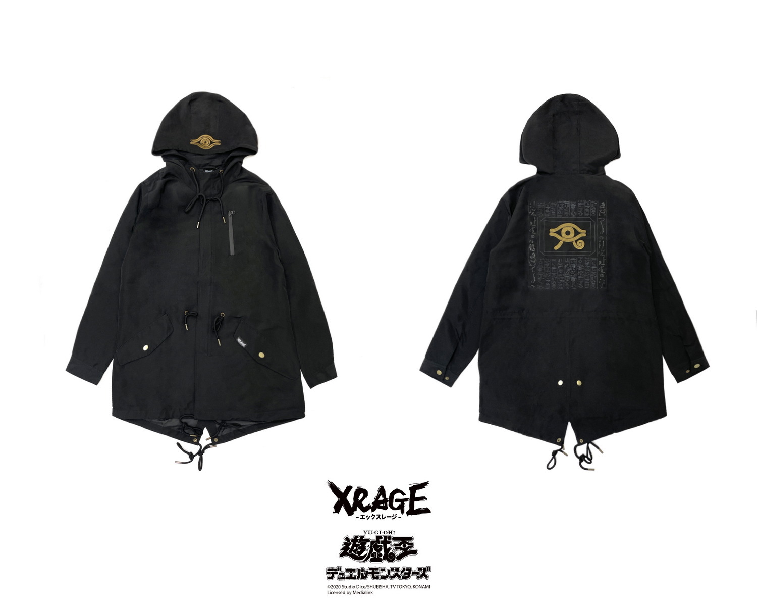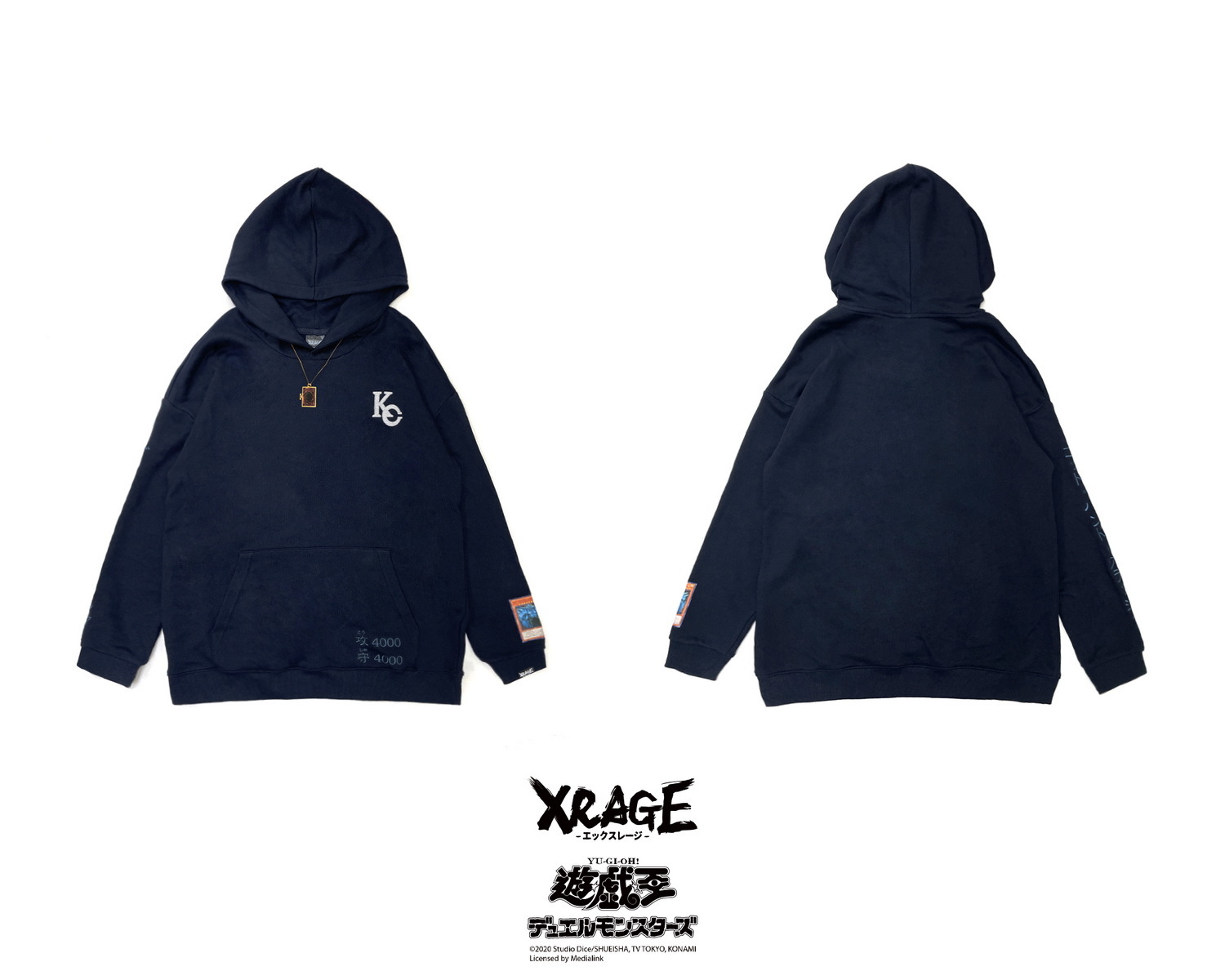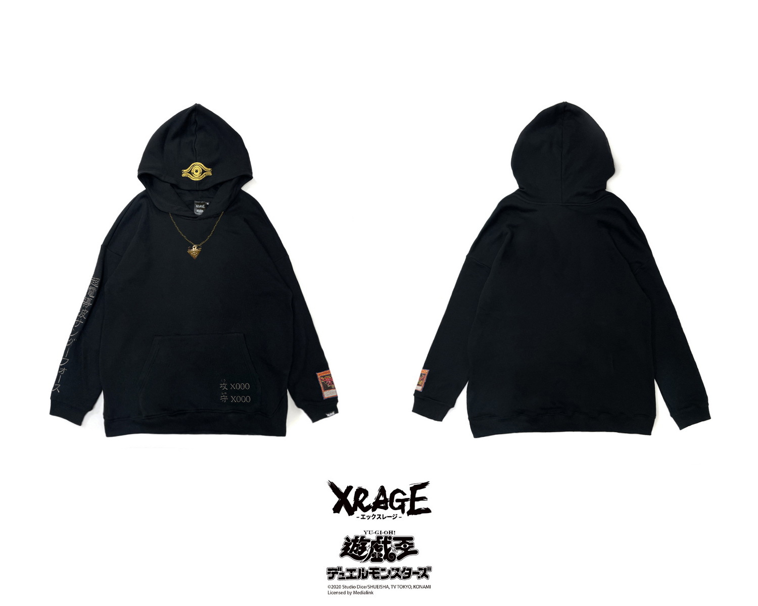 XRAGE 本次聯名以「遊戲卡牌」為主題,將讀者一看就懂的「梗」與服飾融合,推出以多代經典卡牌為核心設計的二十多樣商品,其中最具矚目的莫屬本次獨家設計黑灰異色版,人氣怪獸卡片青眼白龍,立領上衣與超還原地墊。