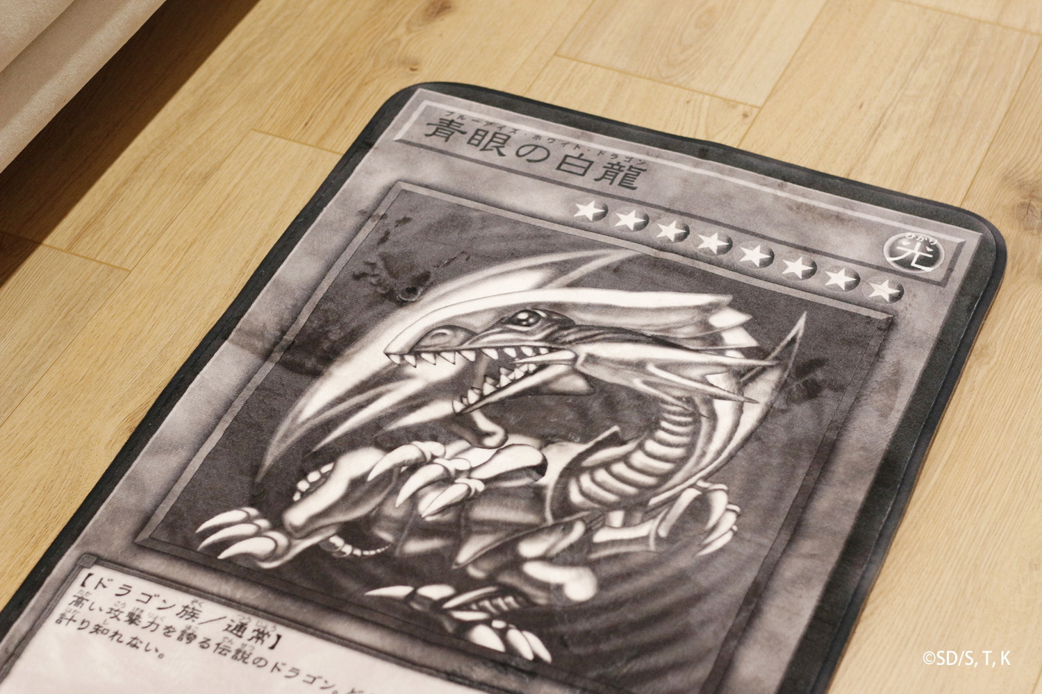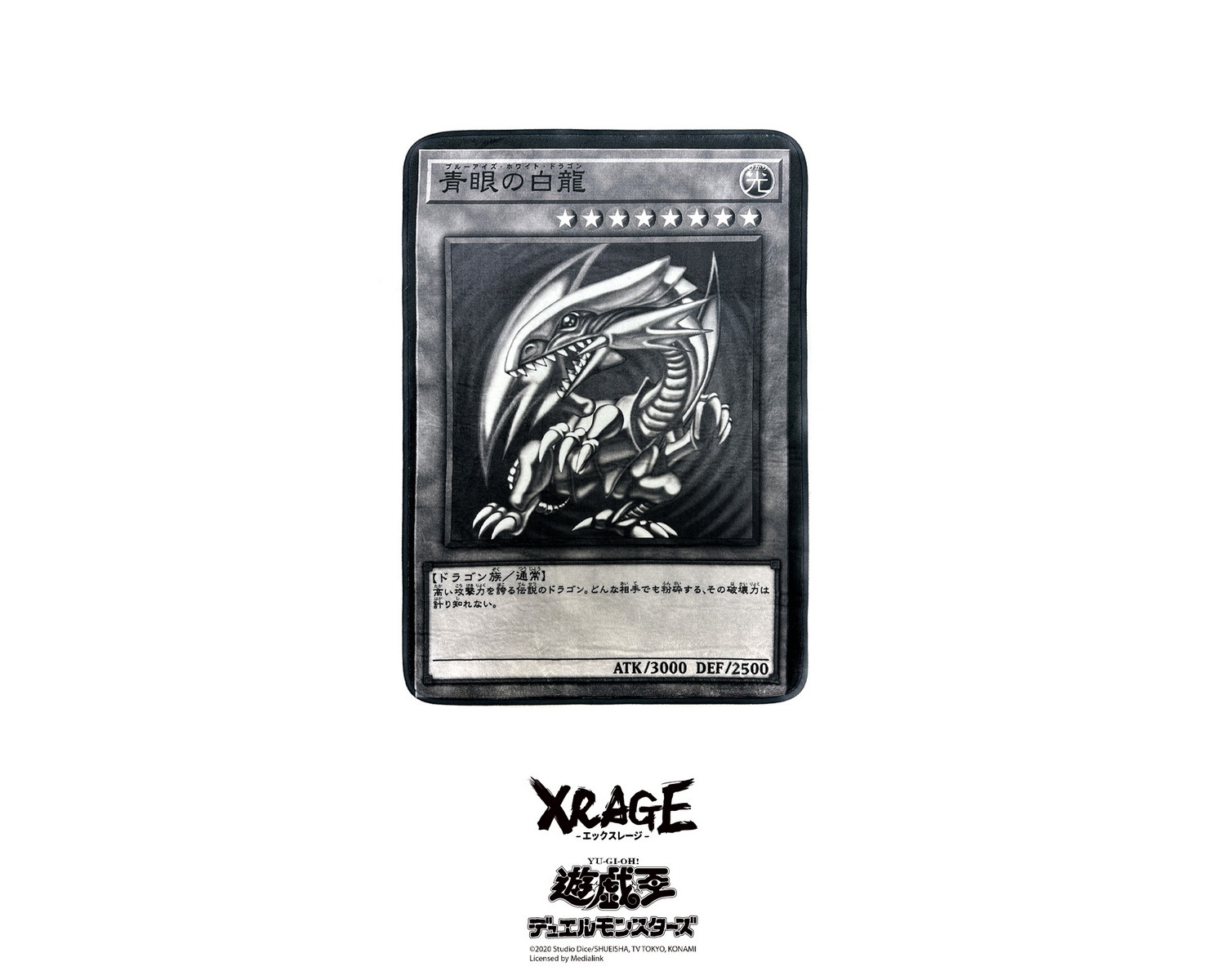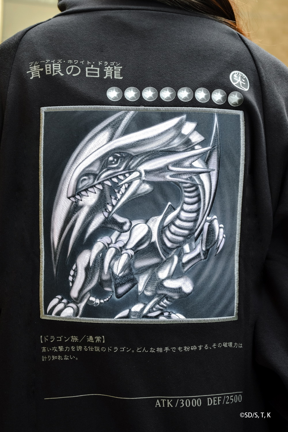 傳說之龍無堅不摧的魄力。地墊則將卡片細節重現,等比放大的青眼白龍更顯力量磅礡。兩款刺繡外套中的首款青眼白龍款,右側口袋將青海馬瀨人集團的 KC 標誌還原;另外一款青眼亞白龍,則致敬 20 週年動畫電影所推出的經典卡牌,將刺繡技術使怪獸活靈活現於服飾上。