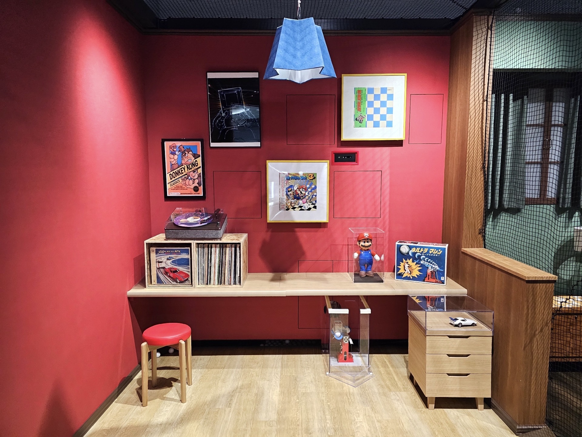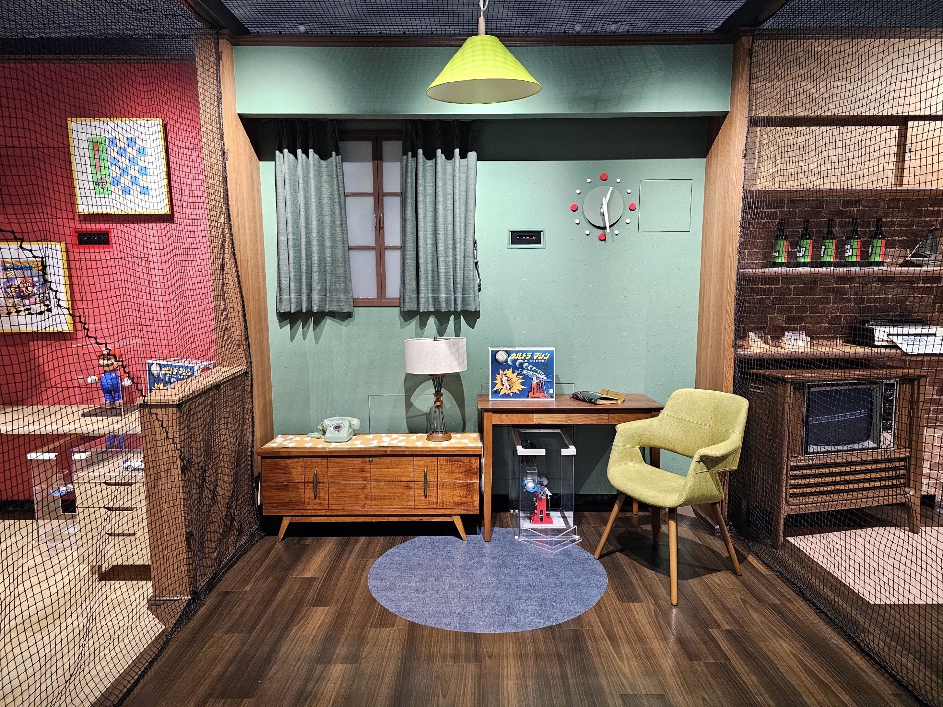 重現 1968 年家庭用投球機的「Ultra Machine SP」,玩一局 2 枚金幣,會有 20 球揮棒機會。這裡有六個模仿昭和年代住家打造的房間,每一個房間都精心設計了任天堂風格的彩蛋裝潢,可以選擇自己喜歡的房間來排隊。