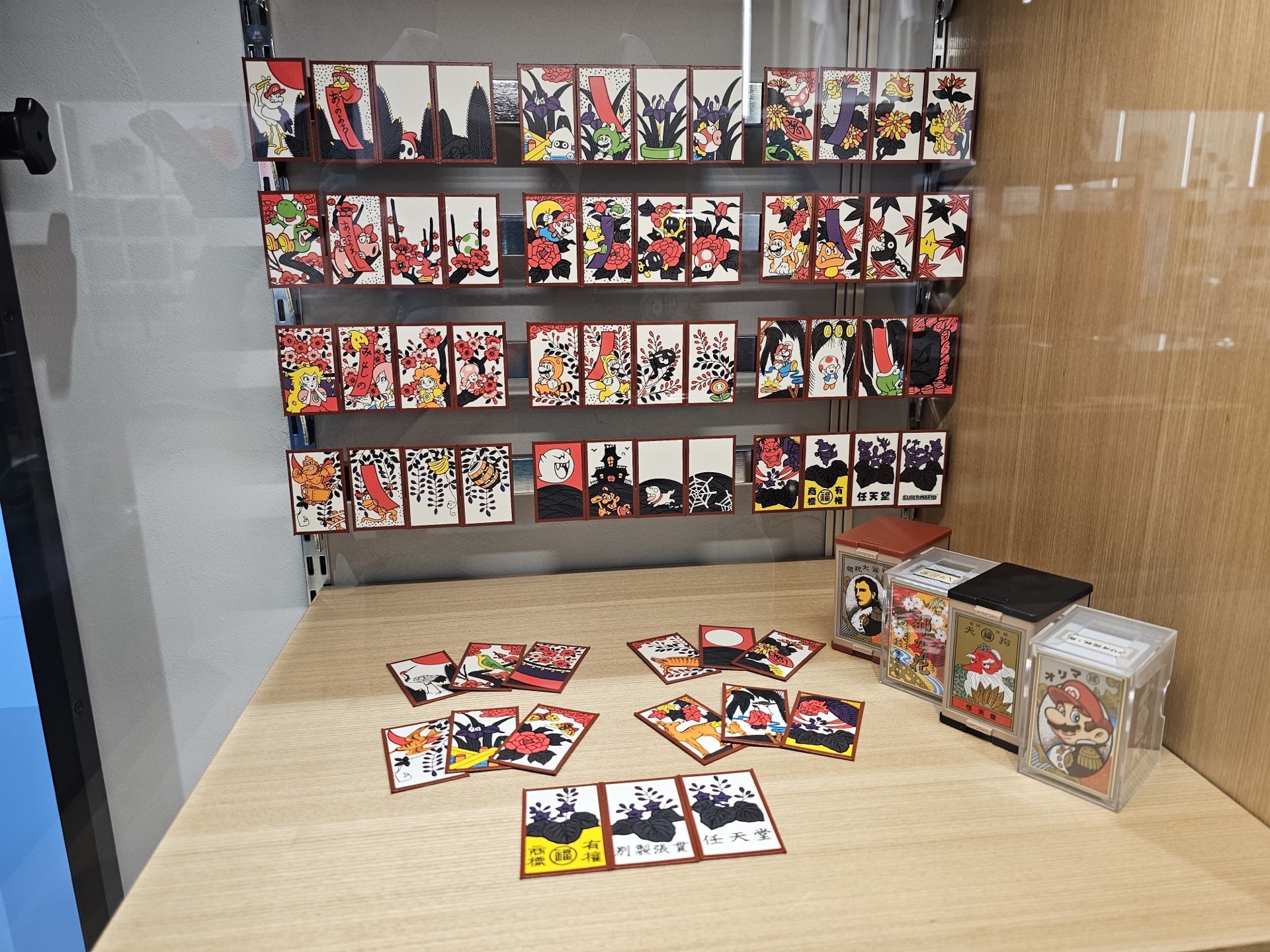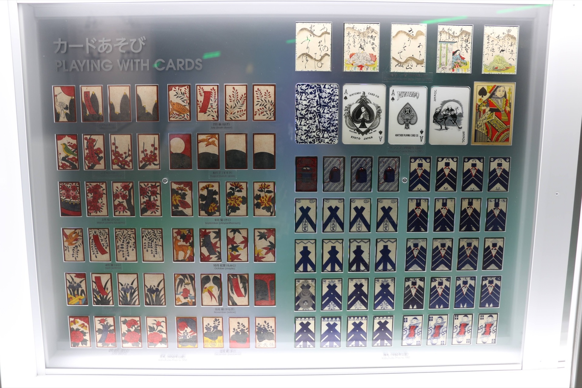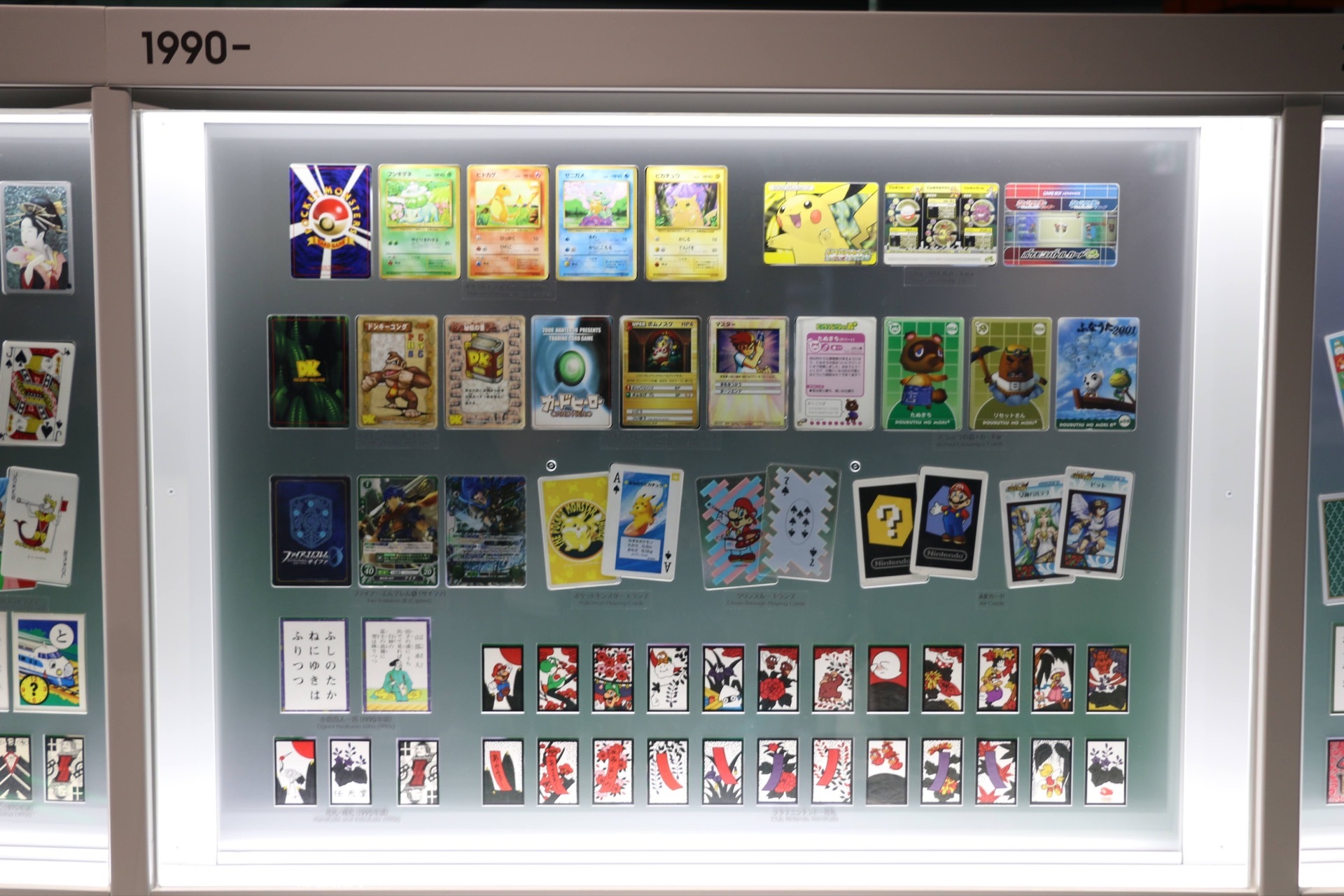 事實上在 1F 互動區的周遭也展示了很多歷史資料,靠近內圈有從花札到寶可夢卡牌等任天堂歷代的卡片產品。