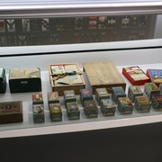 走道的盡頭還展示了任天堂舊本社所保存的花札標籤保管櫃。展示了 1930 年代多種花札標籤,讓參觀者可以了解當時製作花札的種類多樣性。