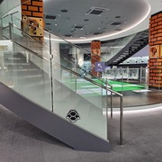 2 樓的核心展示廳集中展示了任天堂從成立至今推出的各類產品與遊戲作品,從中央的方塊狀螢幕「Cube Vision」看過去,四周的天花板上展示著各個時期遊戲主機或控制器的巨大模型。