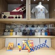 刷卡走出收藏品區後,迎接遊客的是任天堂博物館的迷你建築模型,以及紀念品專賣店的展示區。