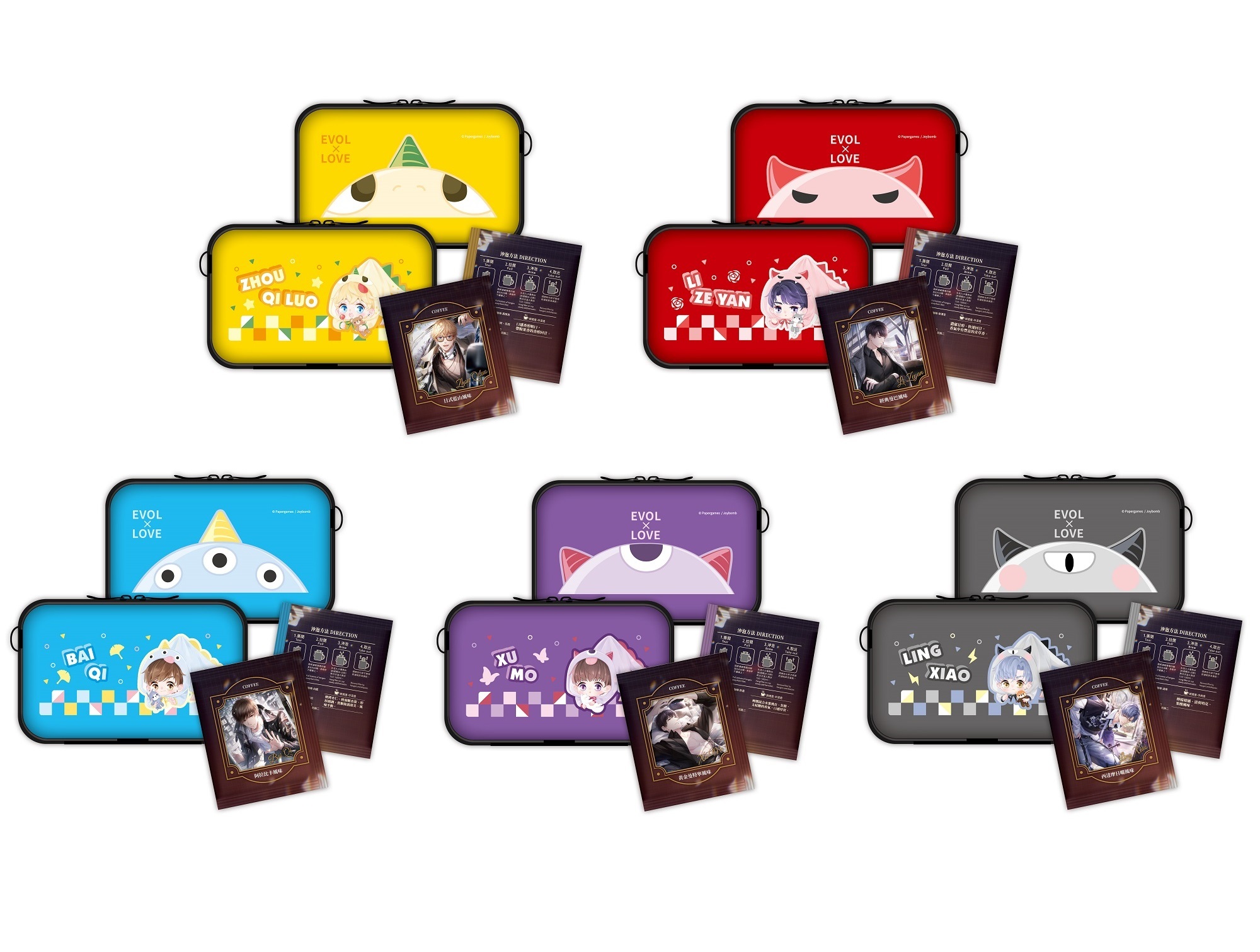 戀與製作人》帥氣到不行的 3D 光柵胸章以及長方型胸章,最適合喜歡做痛包的製作人們,本次在高雄更限量到貨硬殼化妝包+濾掛咖啡組,化妝包也可用來裝娃或壓克力,便攜好實用!而跟著《