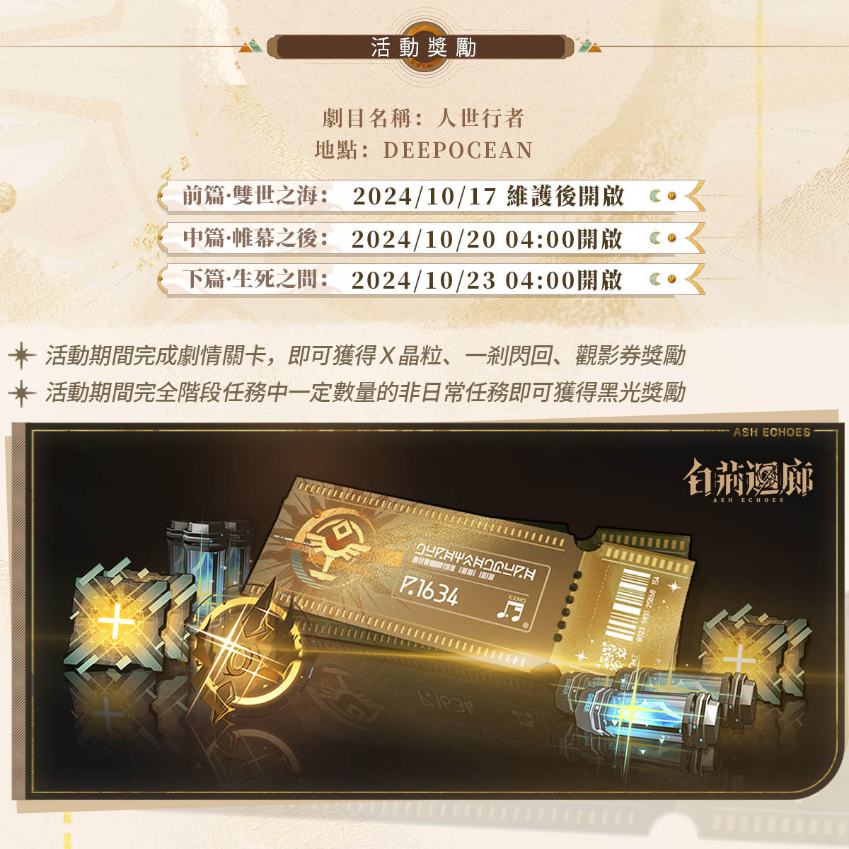 ● 活動時間:2024/10/17 (維護更新後)~2024/11/07 03:59