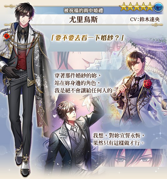夢王國與沉睡中的 100 位王子殿下》(以下簡稱《夢 100》)繁中版今日宣布,全新覺醒硬幣活動「被祝福的雨中婚禮」正式登場,完成活動任務即可獲得帥氣的活動限定王子。