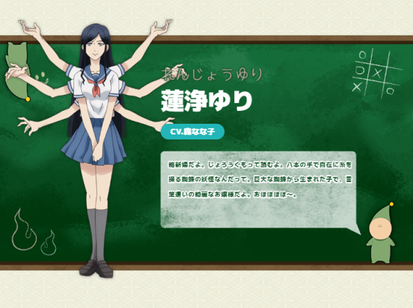不過這裡的妖怪老師並不是古早主打斬妖除魔的神眉老師類型,正好相反,作為故事主要舞台的整個百鬼學園正是以日本年輕妖怪為招生對象的特殊學校,舉凡貓又、座敷童子、一目小僧、狸貓…等等日本特色妖怪,主角就是作為眾妖怪學生們的老師而就職於這所特別的學校。