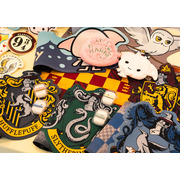整潔小物少不了最擅長打掃的多比,兩款「洗衣籃」有著 Q 版多比圖案,讓粉絲清潔髒衣服也有好心情。「毛毯」有美式復古海報風格霍格華茲特快車及插畫風校徽等五款,陪你迎接微涼的秋天。哪個是你心中的夢幻學院呢?「陶瓷杯墊」以霍格華茲四個學院代表動物為設計推出兩系列共八款,喜歡葛來分多的「獅」還是史來哲林的「蛇」任你挑。喜歡文青風格的就選「木杯墊」,共有美式畫風的雷文克勞「鷹」和赫夫帕夫「獾」等八款,喜歡華麗風格的粉絲可別錯過「流沙杯墊」,有 Q 版霍格華茲城堡及 Q 版哈利波特騎著掃帚等九款,桌上就靠杯墊們來幫你保持乾淨。