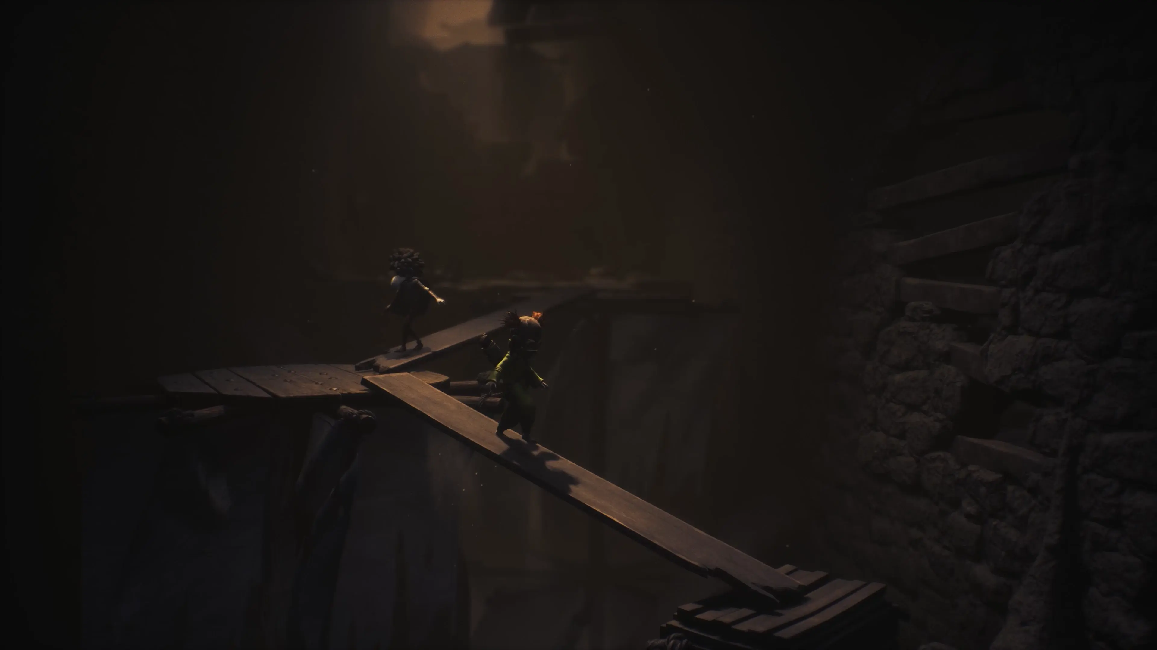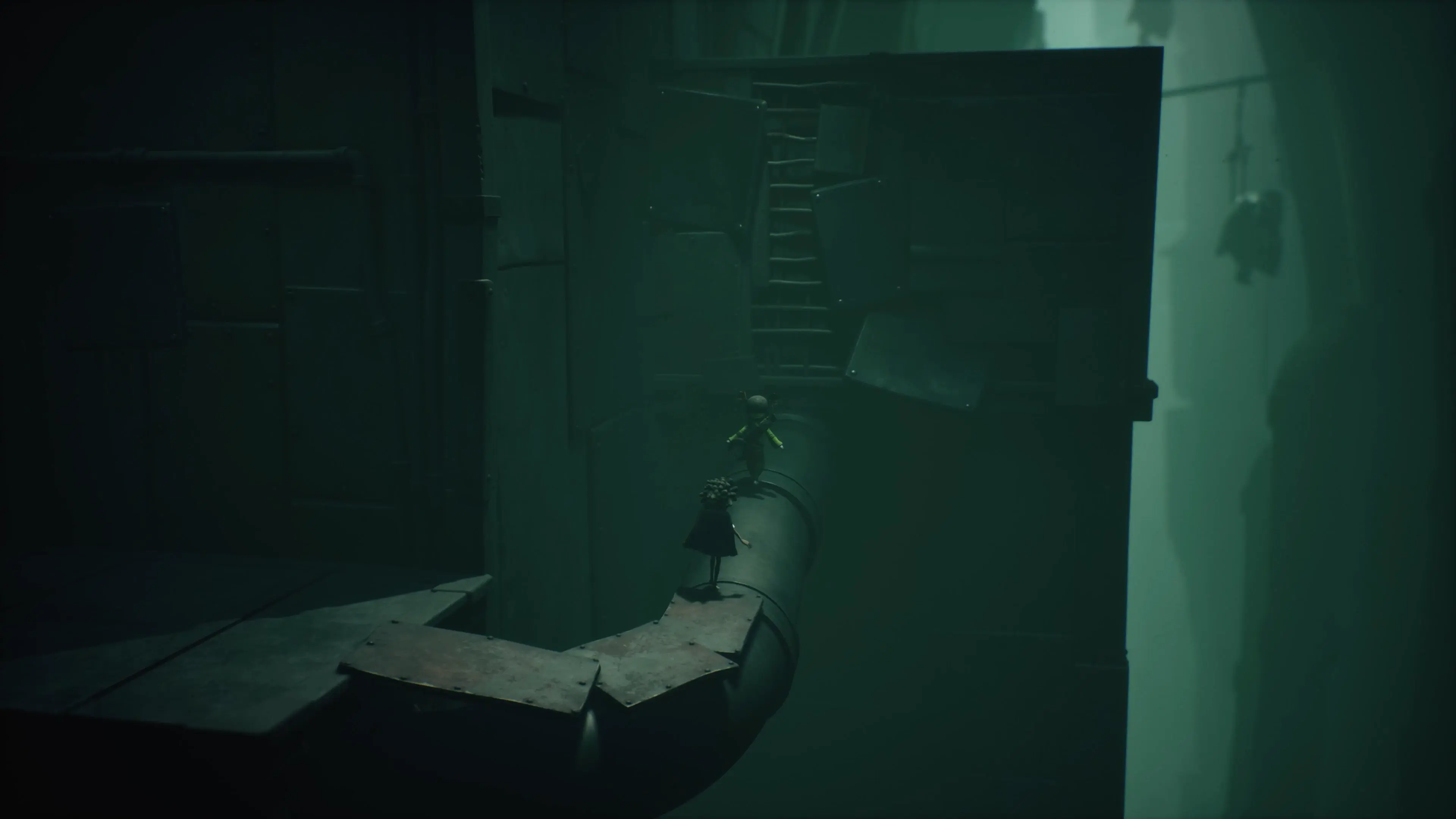 小小夢魘 3 》則是有把兩名角色做出區別來。首先是兩名角色各自標準配備的工具不同,小洛使用的是能射擊遠方目標的「弓箭」,小寂使用的是能扳動或敲打身旁物件的「扳手」。其次是玩家可以選擇操作角色,因為兩者持有的工具 = 固有能力不同,所以玩法也會跟著改變。
