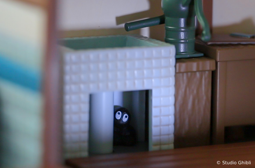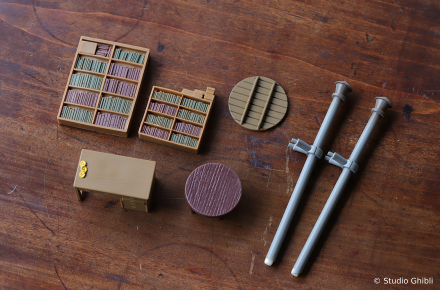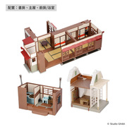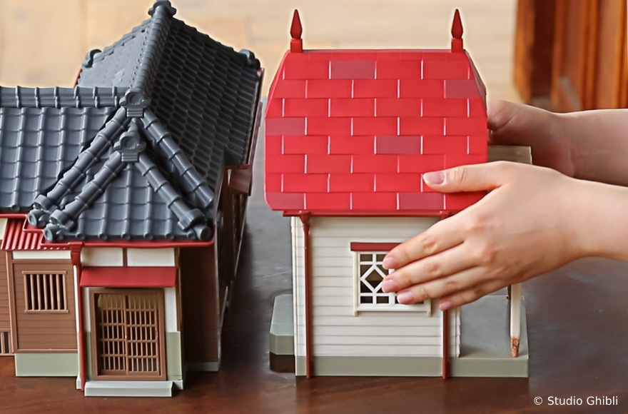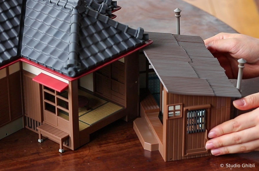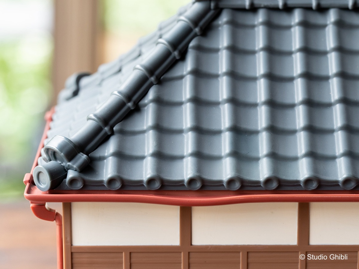 《龍貓》電影中,草壁一家搬到鄉下這棟有點不尋常的房子,以「模型屋」的模樣與粉絲見面。「模型屋 草壁家」約高 27cm、寬 53cm 的尺寸,即便是「全新」的模型屋商品,但卻細膩的重現出昭和初期建造、廢棄已久的環境以及老房子的氛圍,給人一種隨著時間推移而老化的感覺,例如扭曲的雨水槽、褪色的瓷磚和髒兮兮的鐵皮屋頂,隨處可見開發團隊的用心。