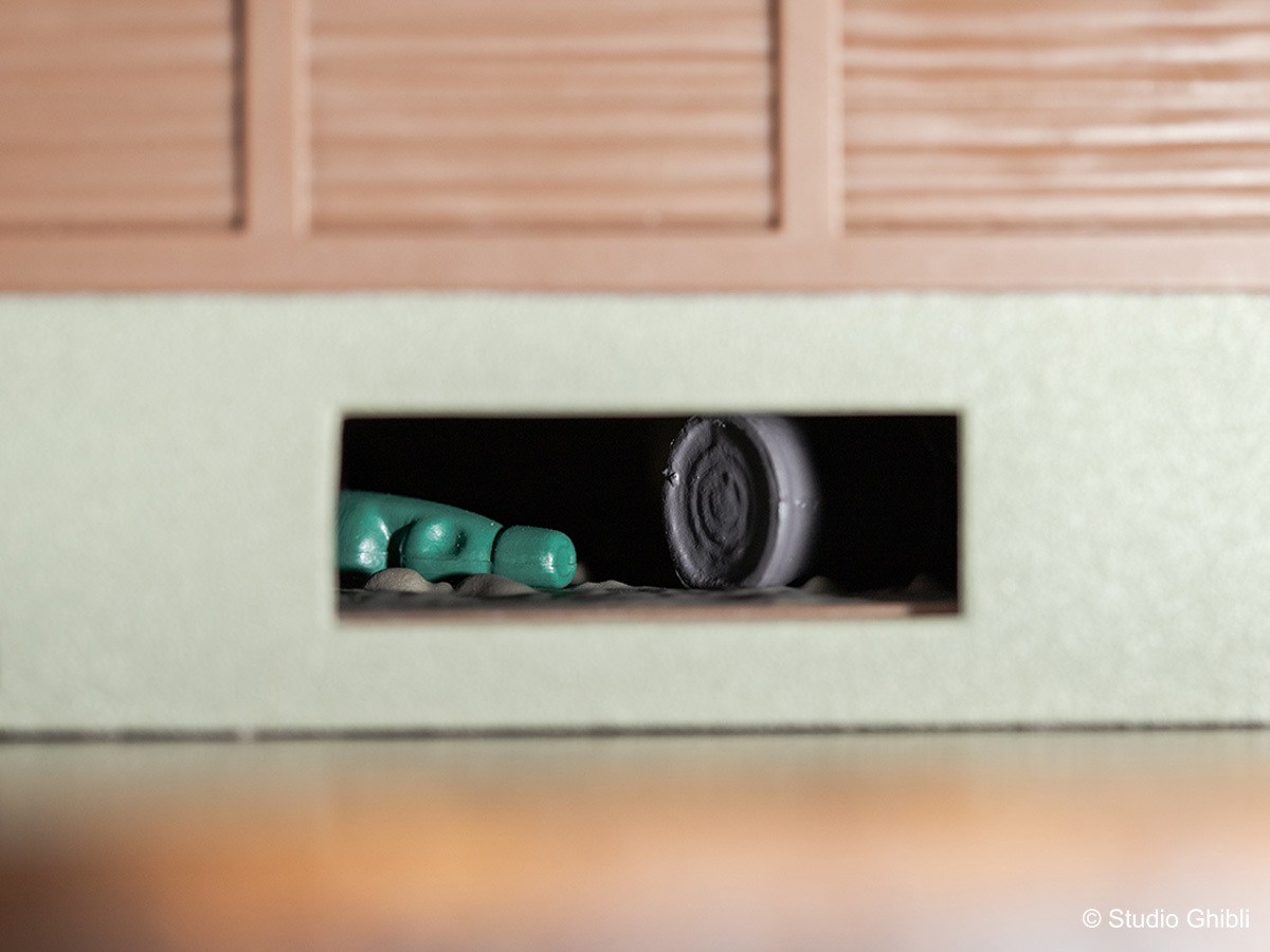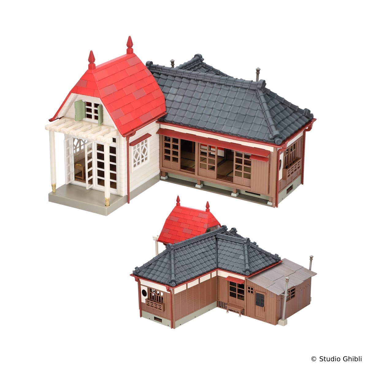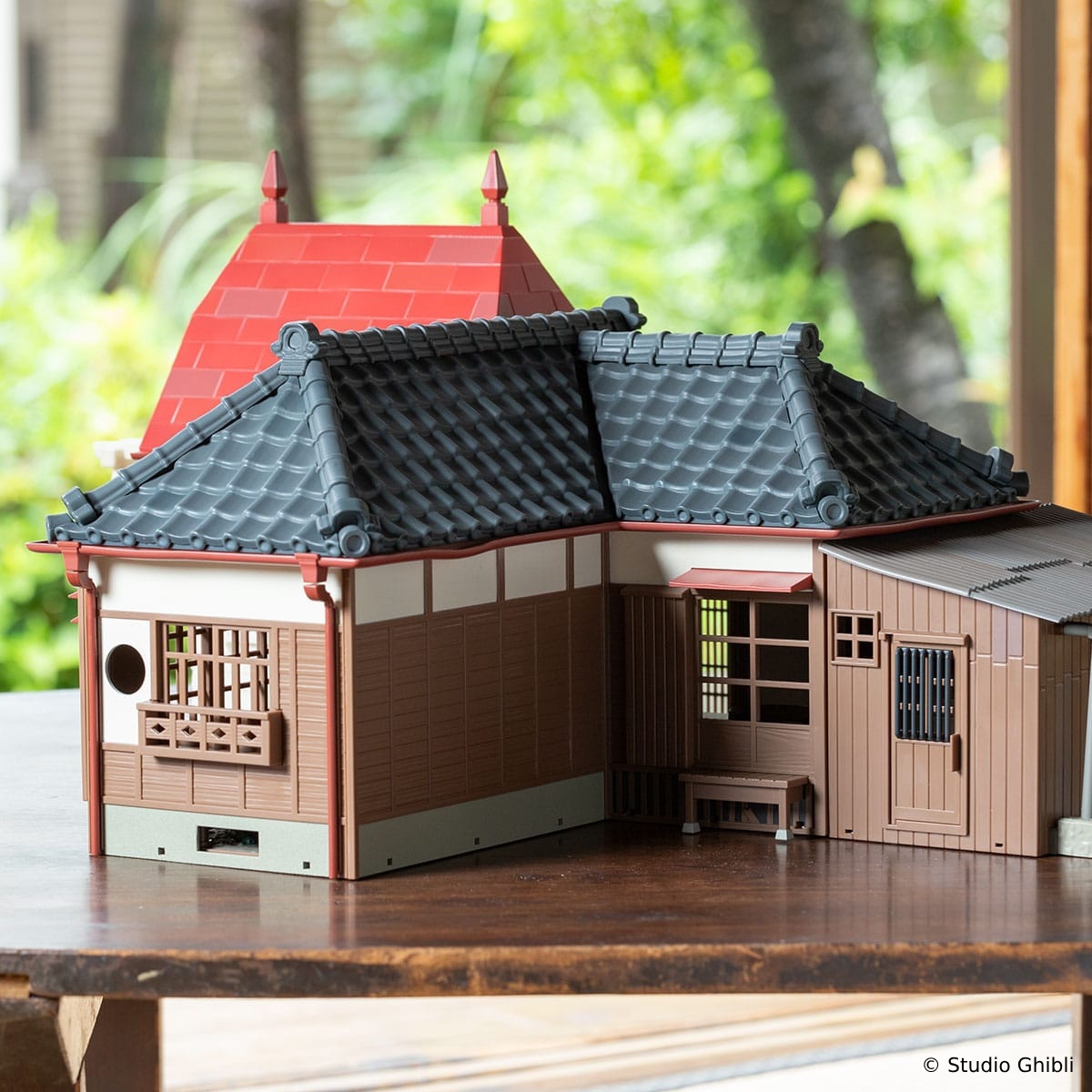《龍貓》電影中,草壁一家搬到鄉下這棟有點不尋常的房子,以「模型屋」的模樣與粉絲見面。「模型屋 草壁家」約高 27cm、寬 53cm 的尺寸,即便是「全新」的模型屋商品,但卻細膩的重現出昭和初期建造、廢棄已久的環境以及老房子的氛圍,給人一種隨著時間推移而老化的感覺,例如扭曲的雨水槽、褪色的瓷磚和髒兮兮的鐵皮屋頂,隨處可見開發團隊的用心。