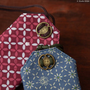 全系列共有三種包款,工藝復古中帶有巧思,作工精細。「束口袋」可以容納手機、錢包,是出門時輕便搭配的理想選擇。「道中錢包」的繫繩還搭配精緻的小黑炭銅錢,拿在手上更是一秒回到昭和時代。「卡片包」有著御守的外觀,繫在包包上超典雅,還可以將常用的感應式卡片放進去,搭車時也能彰顯氣質。